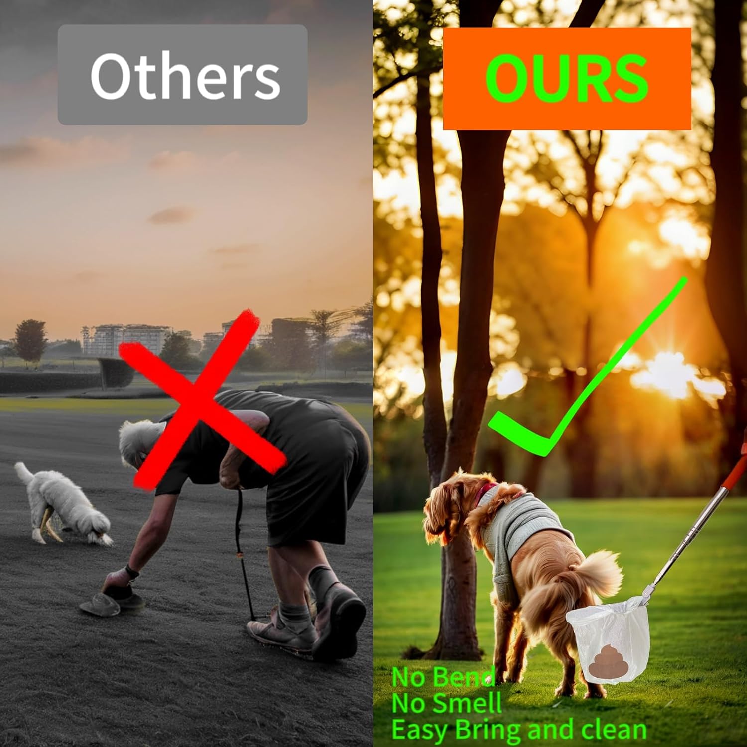 Mango largo plegable de 55 pulgadas: esta pala para excrementos de mascotas se puede ampliar a un mango de 55 pulgadas, los raspadores RUILOGA-UK hacen que no tengas que agacharte para limpiar, incluso una distancia de 4.6 ft con tus perros. El atrapa excrementos puede ser ajustable, apto para ancianos