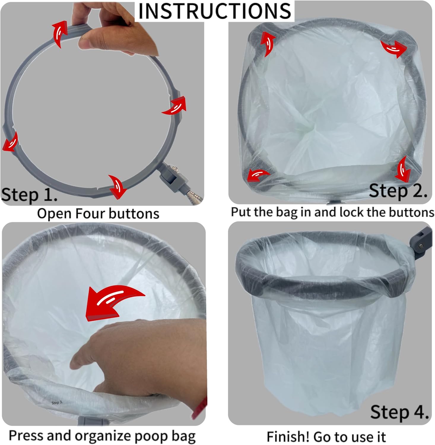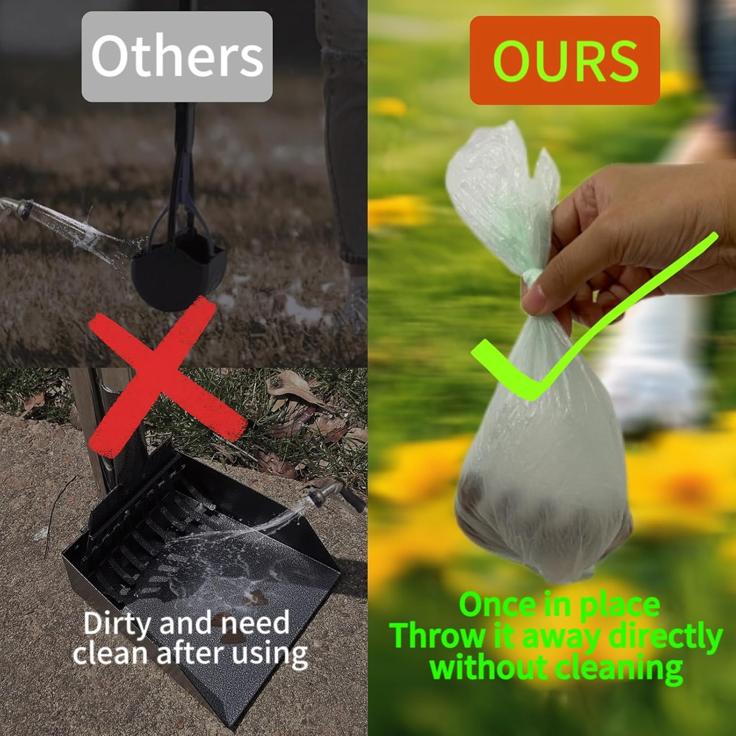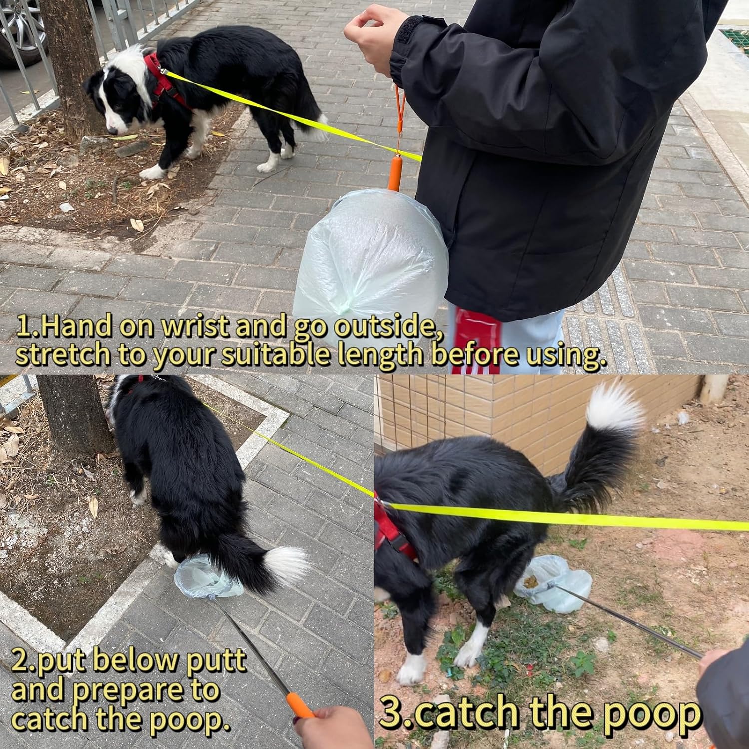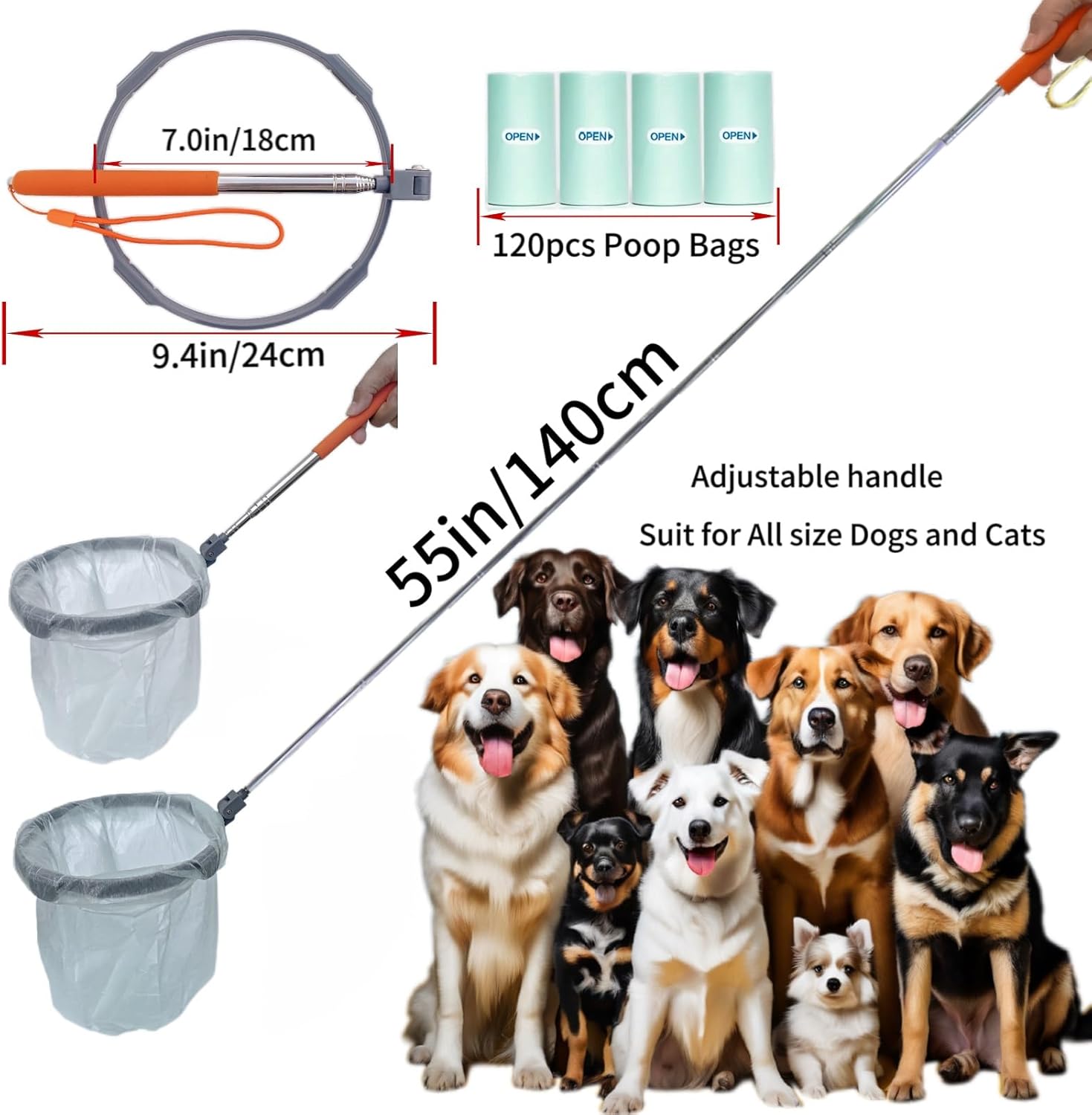 120 bolsas de basura mejoradas para excrementos: el recogedor de excrementos está hecho de material de alta calidad y acero inoxidable 201, las piezas clave están moldeadas en una inyección, que son fuertes y ligeras. Se adjunta con 120 bolsas de basura