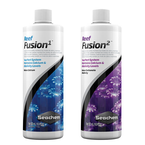 REEF FUSION 1™ y REEF FUSION 2™ son la base de un Sistema formulado para proveer elementos esenciales al acuario. Reef Fusion 1™ aporta calcio, mientras Reef Fusion 2™ provee alcalinidad. Cuando se usan juntos, el Sistema Reef Fusion ™ puede mantener los niveles de calcio y alcalinidad. Reef Fusion 1™ no solamente aporta 100,000 mg/L de calcio iónico, sino que también incluye apropiados niveles biológicos de magnesio, estroncio, boro, hierro, manganeso y molibdeno. Reef Fusion 2™ contiene una mezcla de carbonatos y bicarbonatos a una alcalinidad de 4400 meq/L. Está diseñado para restaurar y mantener la alcalinidad en el acuario de arrecife y provee a las especies calcáreas con las cantidades necesarias de carbonato esencial para el crecimiento.
