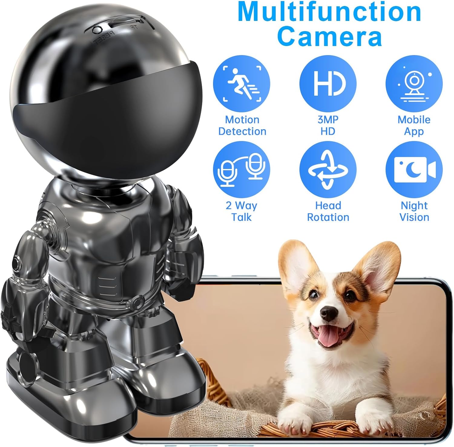 Robot Cámara de Seguridad con Detección de Movimiento con Aplicación de Teléfono 2K 5G/2.4Ghz