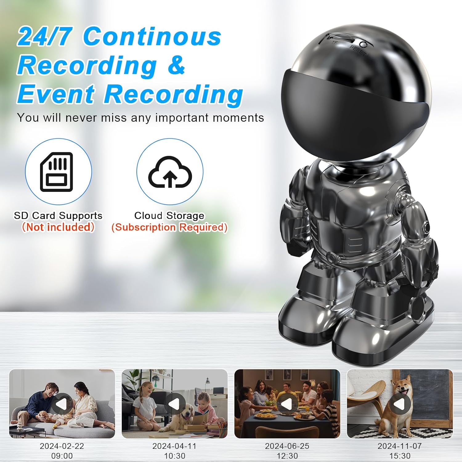 Almacenamiento SD/en la nube: esta cámara de seguridad para interiores proporciona función de almacenamiento en la nube, puedes almacenar de forma segura y acceder de forma remota a las imágenes grabadas a través de la aplicación. Además, la cámara interior admite almacenamiento SD instalando una tarjeta SD (tarjeta SD de 2 x 64 GB, no incluida) para almacenar videos.