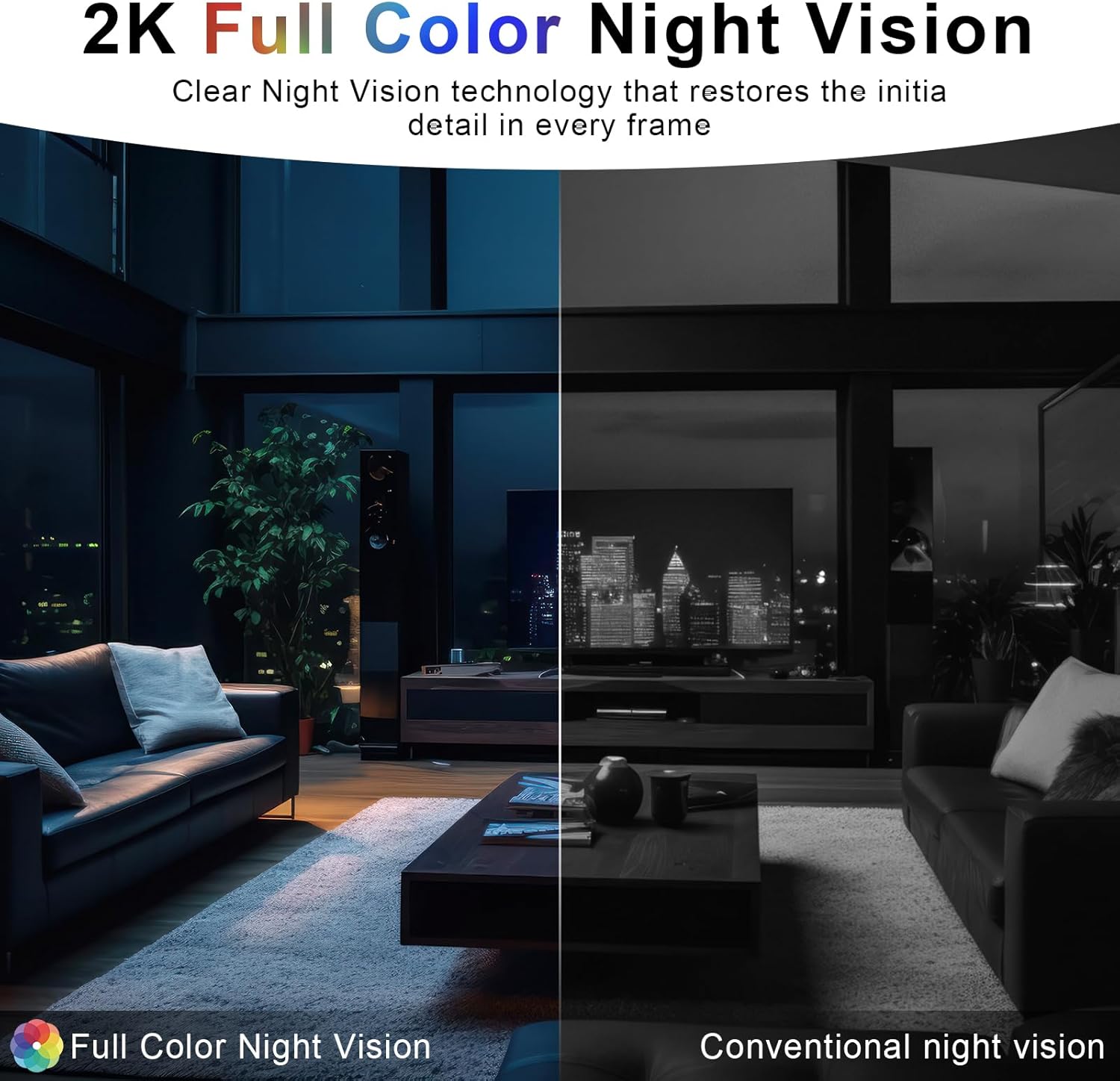 Visión nocturna a color HD 2K: nuestra cámara inalámbrica de seguridad para el hogar ofrece video e imágenes de calidad 2K, asegurando que puedas ver detalles claros día y noche. La cámara para bebé soporta visión nocturna infrarroja y no se ve afectada por la oscuridad. Captura claramente objetos dentro de un rango de 3 pies incluso en condiciones de poca luz.