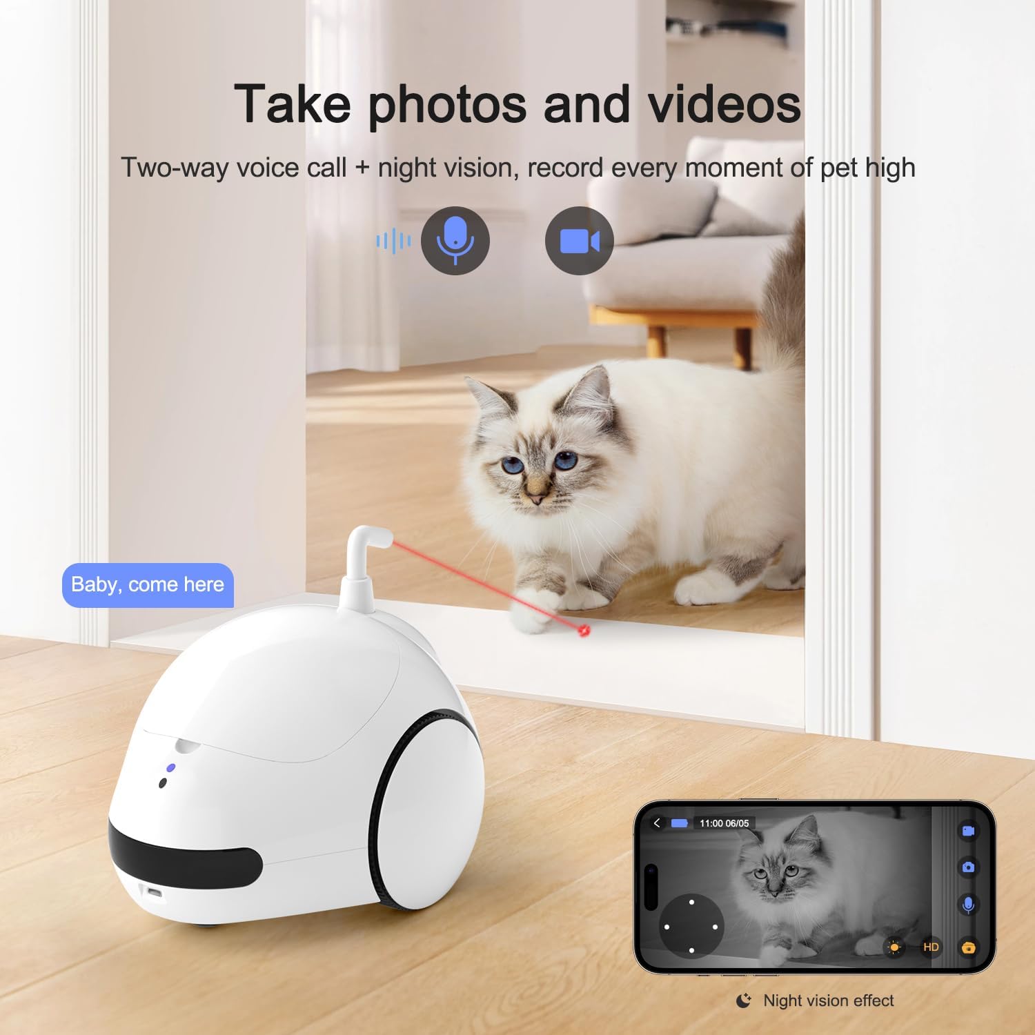 Robot Dispensador de Golosinas con Cámara Móvil + Laser Interactivo para Mascotas con Aplicación de Teléfono