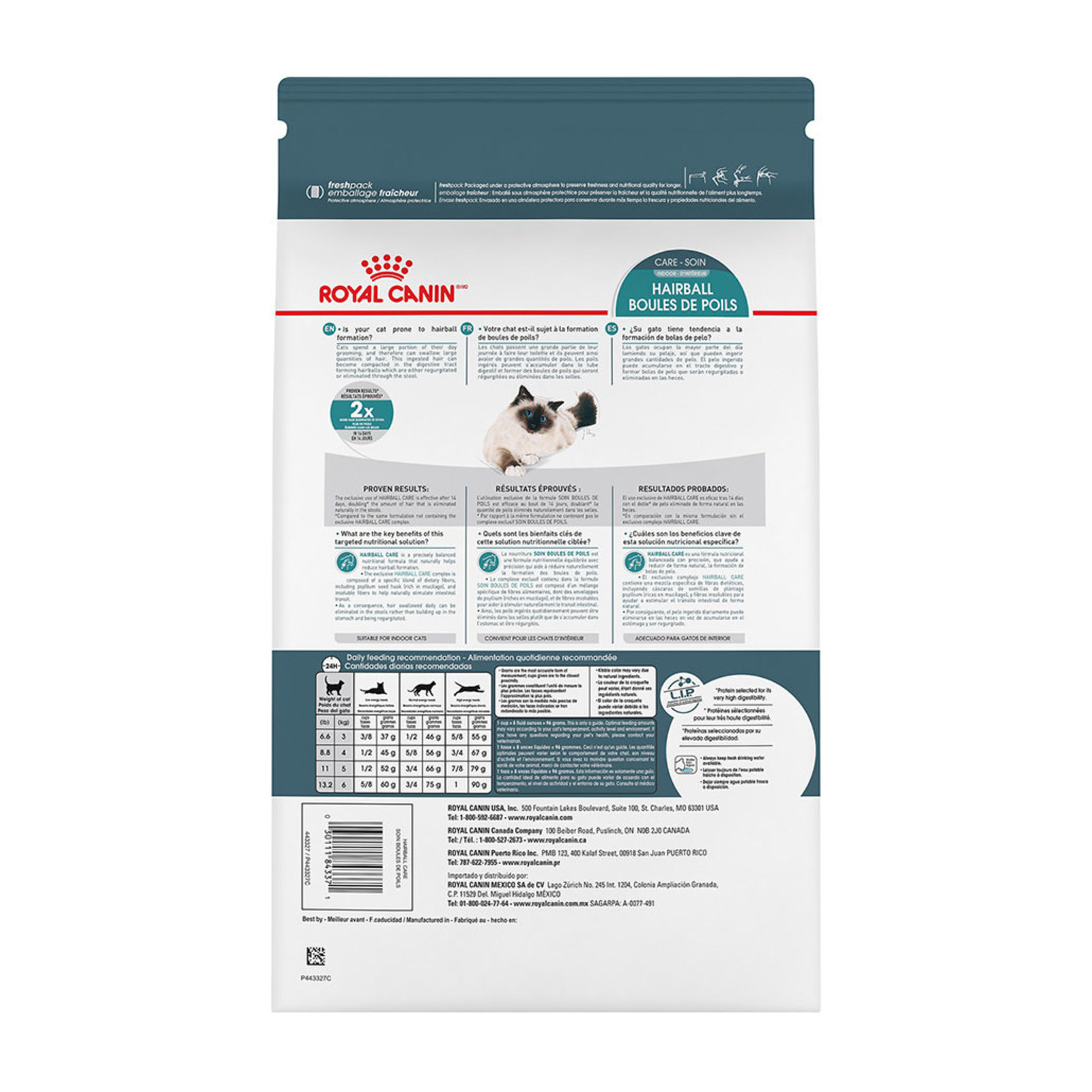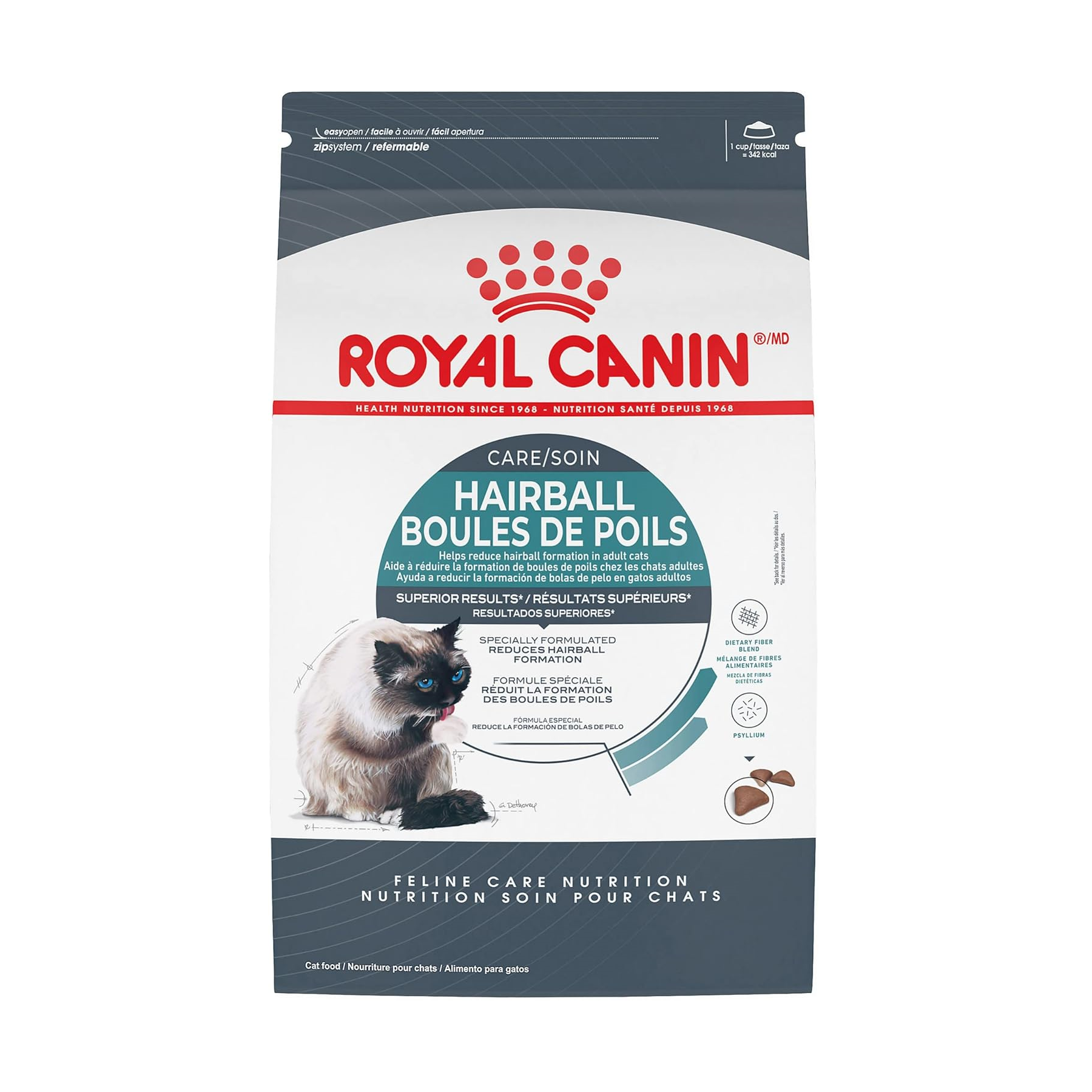 Royal Canin® Feline Care Nutrition Hairball, diseñado especialmente para gatos de 1 a 10 años de edad que son propensos a la formación de bolas de pelo.