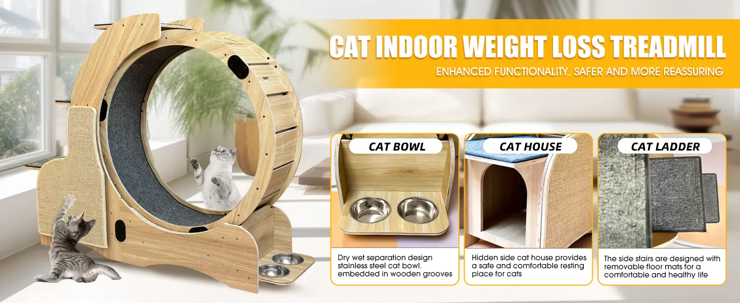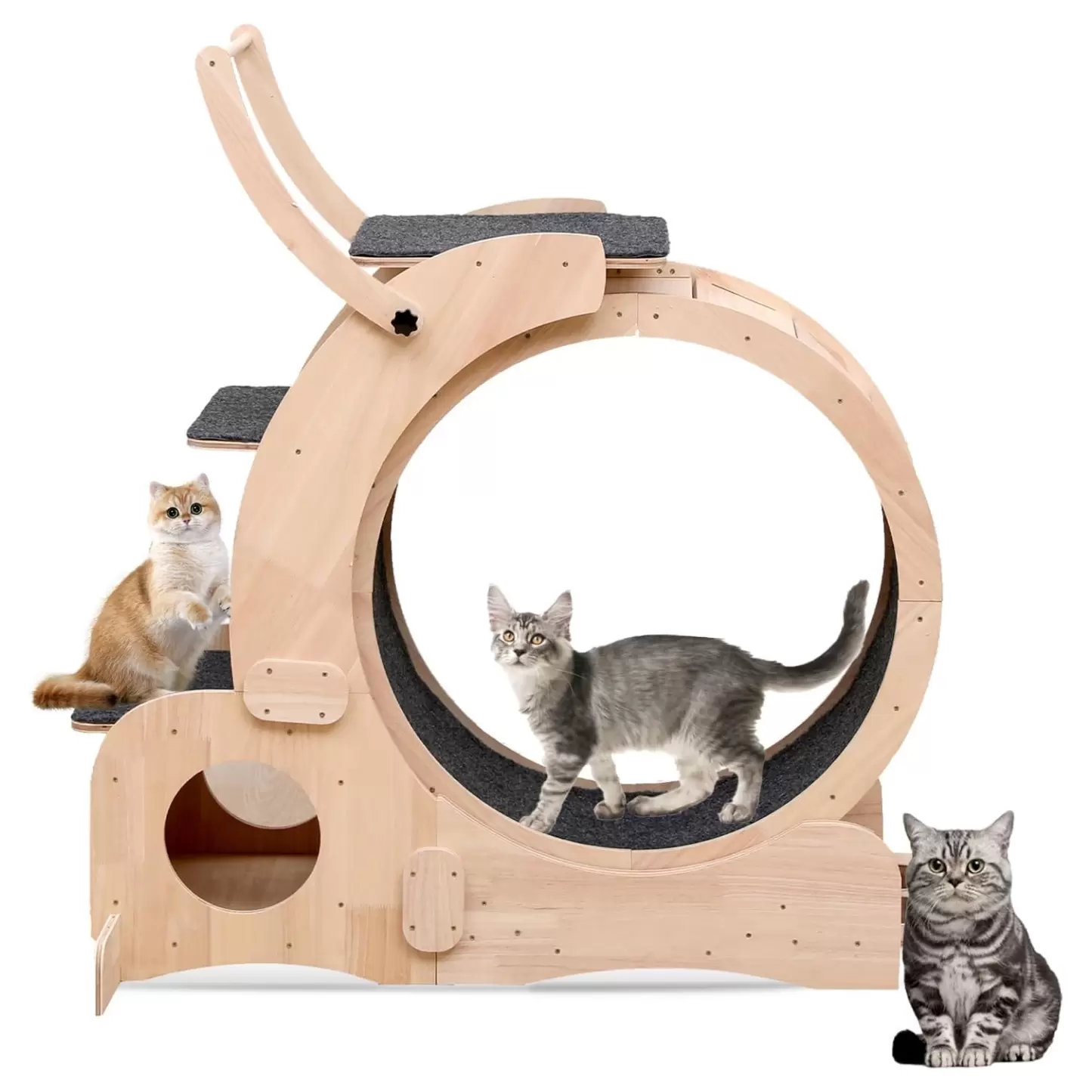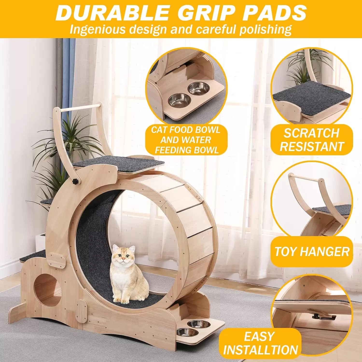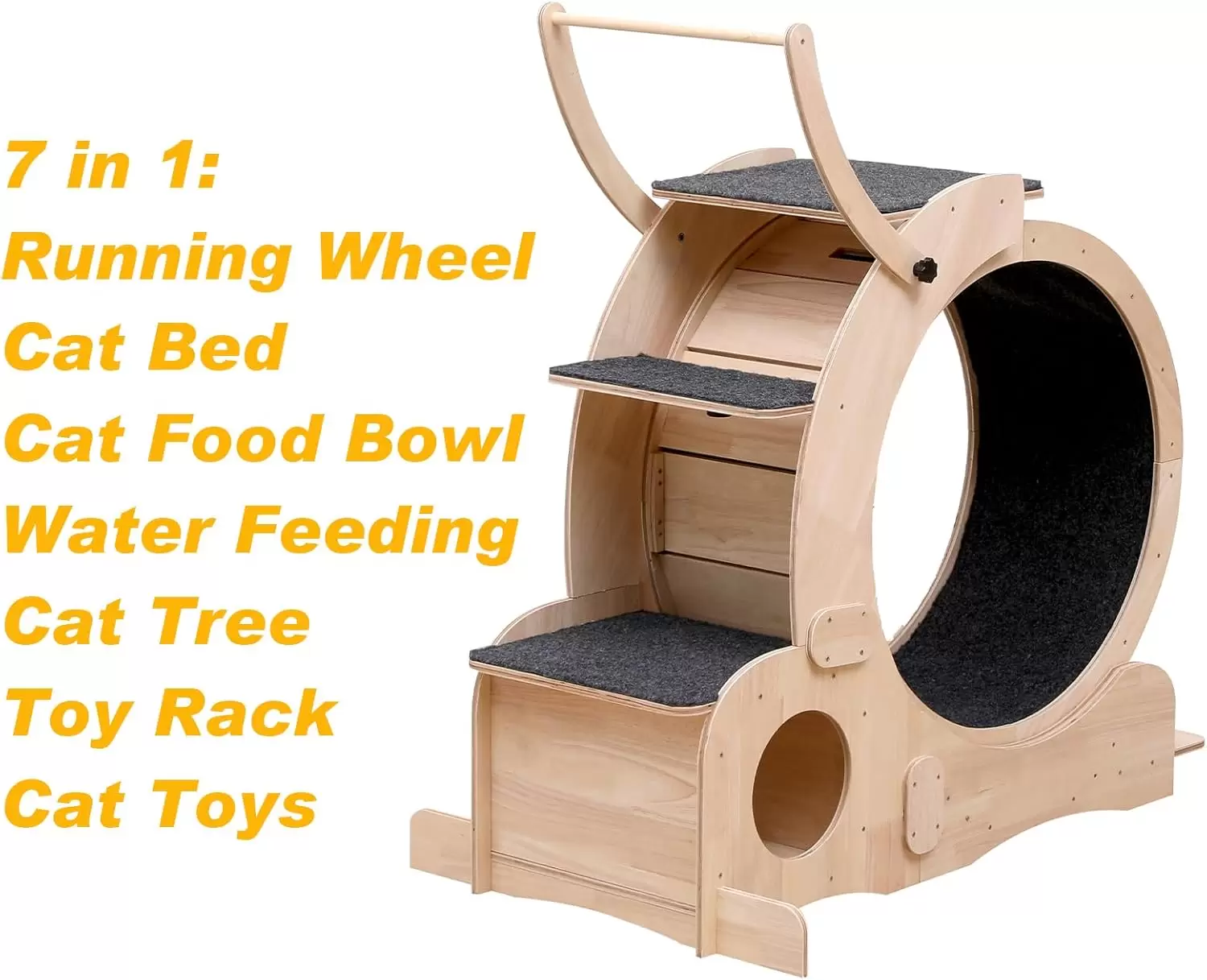 La última función de rueda para gatos 7 en 1: rueda para correr, cama para gatos, cuenco de comida para gatos, alimentación de agua, árbol de gato, estante de juguetes, juguetes para gatos, una cinta de correr que definitivamente hará feliz a tu gato.