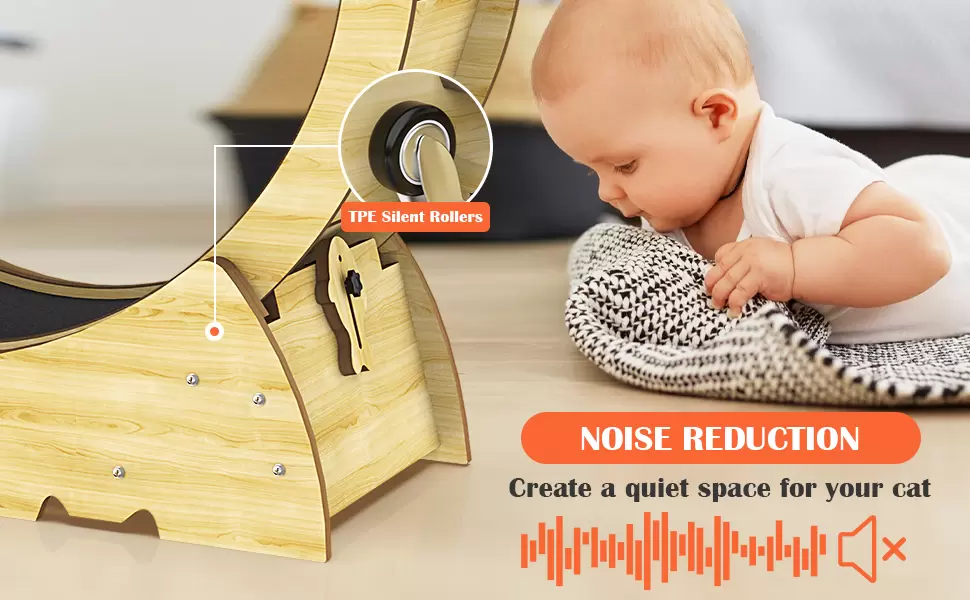 Evita que los gatos pellizquen sus pies: hemos hecho una nueva actualización a la rueda de ejercicio para gatos, reduciendo el espacio entre la base y la rueda para correr, lo que puede evitar eficazmente que los gatos pellizquen sus pies cuando suben y bajen de la cinta de correr para gatos. Las esquinas de la rueda de correr para gatos están pulidas muy redondeadas para evitar cortes