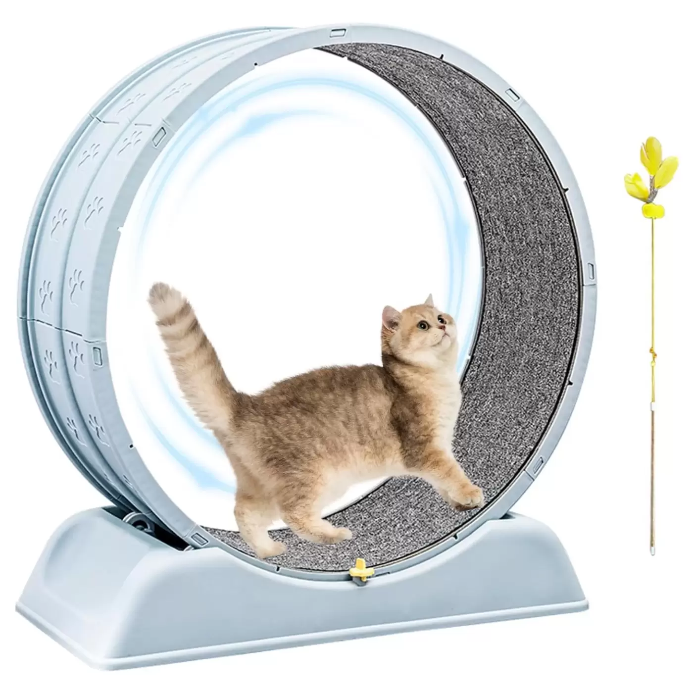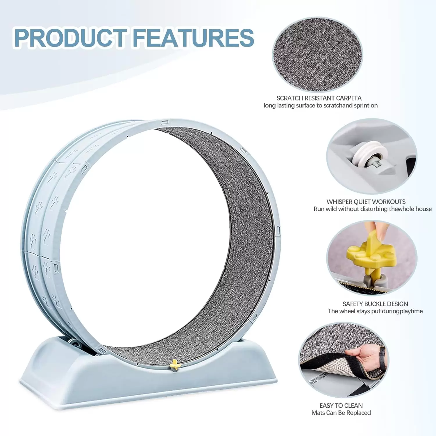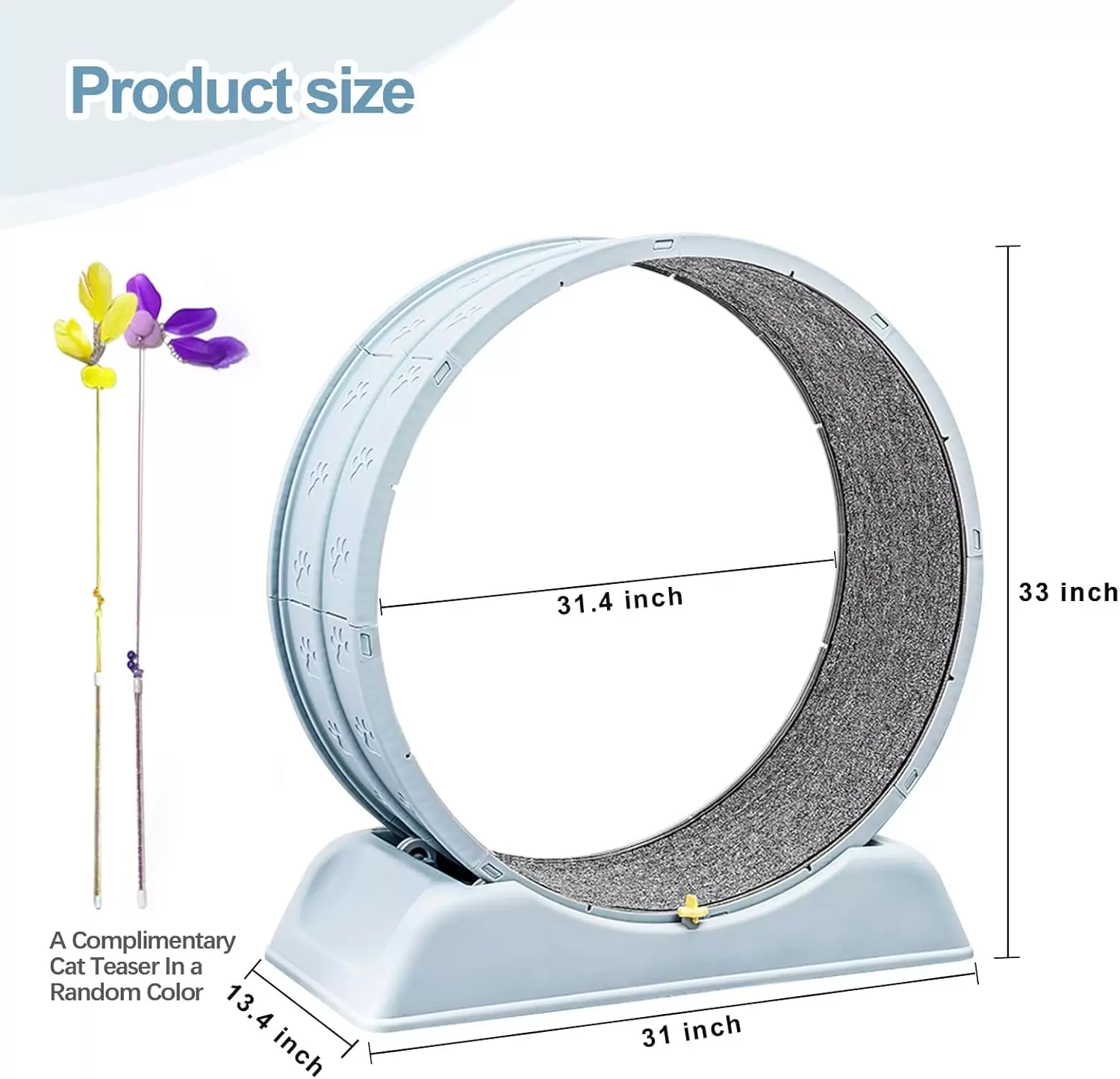 Larga duración y segura: rueda de ejercicio para gatos Goosheep hecha de excelente material de resina de polipropileno, grosor de 1.2 pulgadas, diámetro de 32 pulgadas, diseño de esquinas redondeadas, mano de obra fina para proteger al gato de lesiones, protección completa de la seguridad del gato, diseño a presión, firme y conveniente;