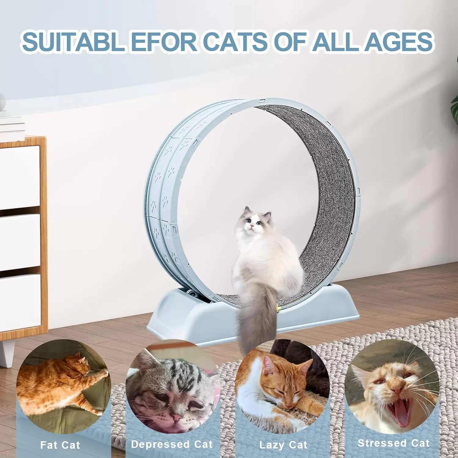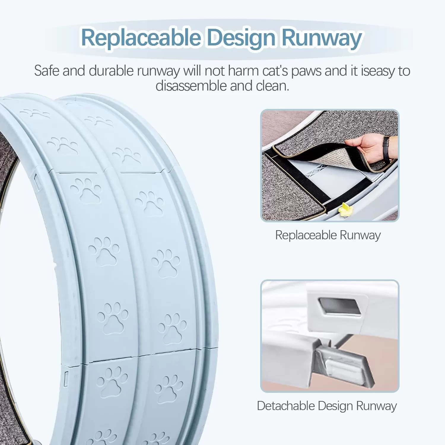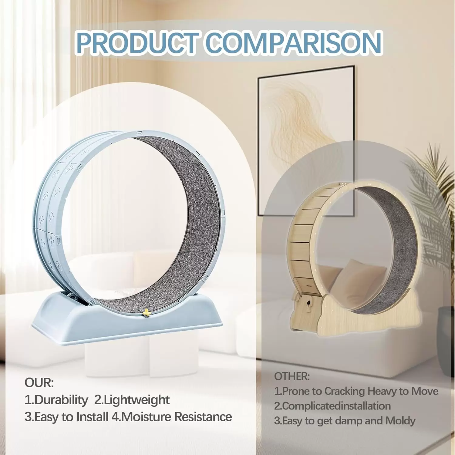 Larga duración y segura: rueda de ejercicio para gatos Goosheep hecha de excelente material de resina de polipropileno, grosor de 1.2 pulgadas, diámetro de 32 pulgadas, diseño de esquinas redondeadas, mano de obra fina para proteger al gato de lesiones, protección completa de la seguridad del gato, diseño a presión, firme y conveniente;
