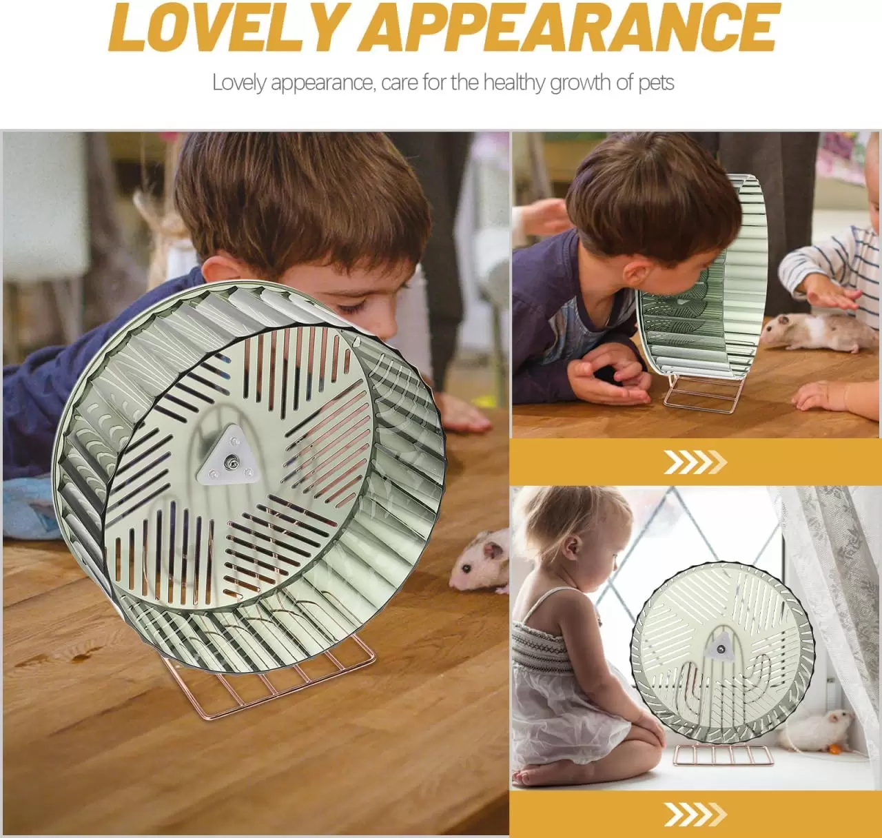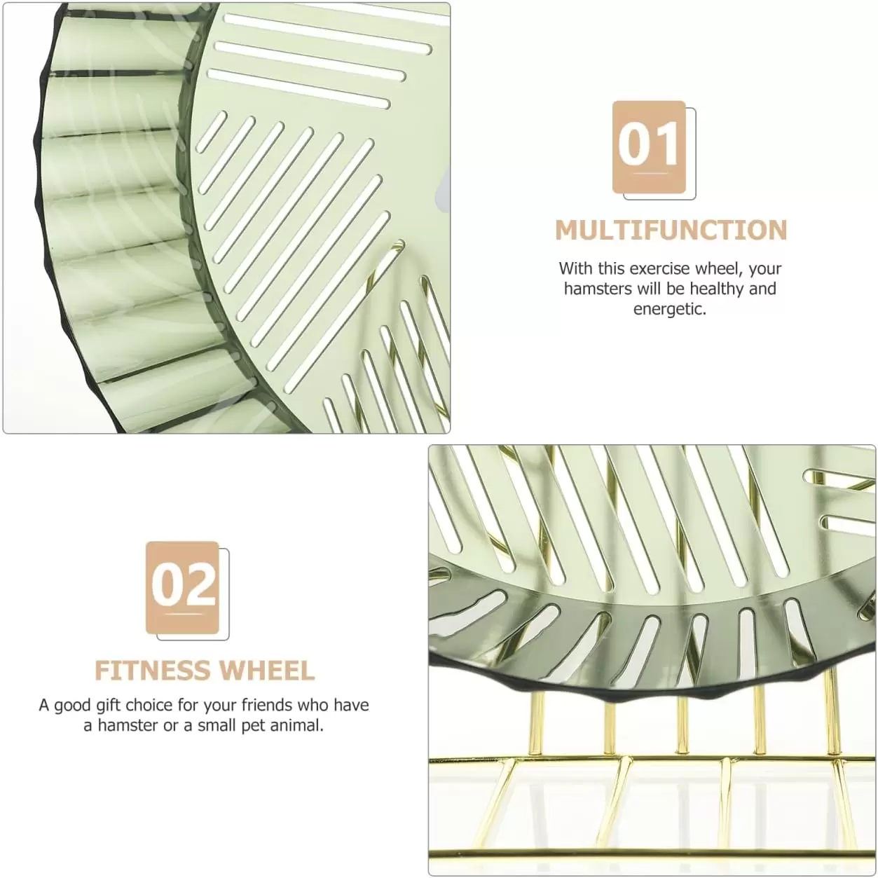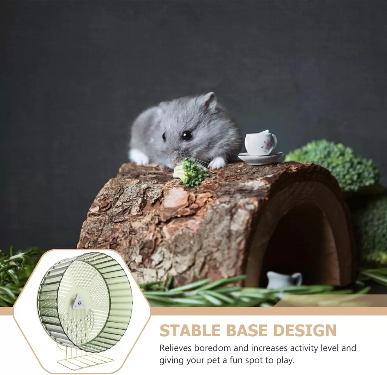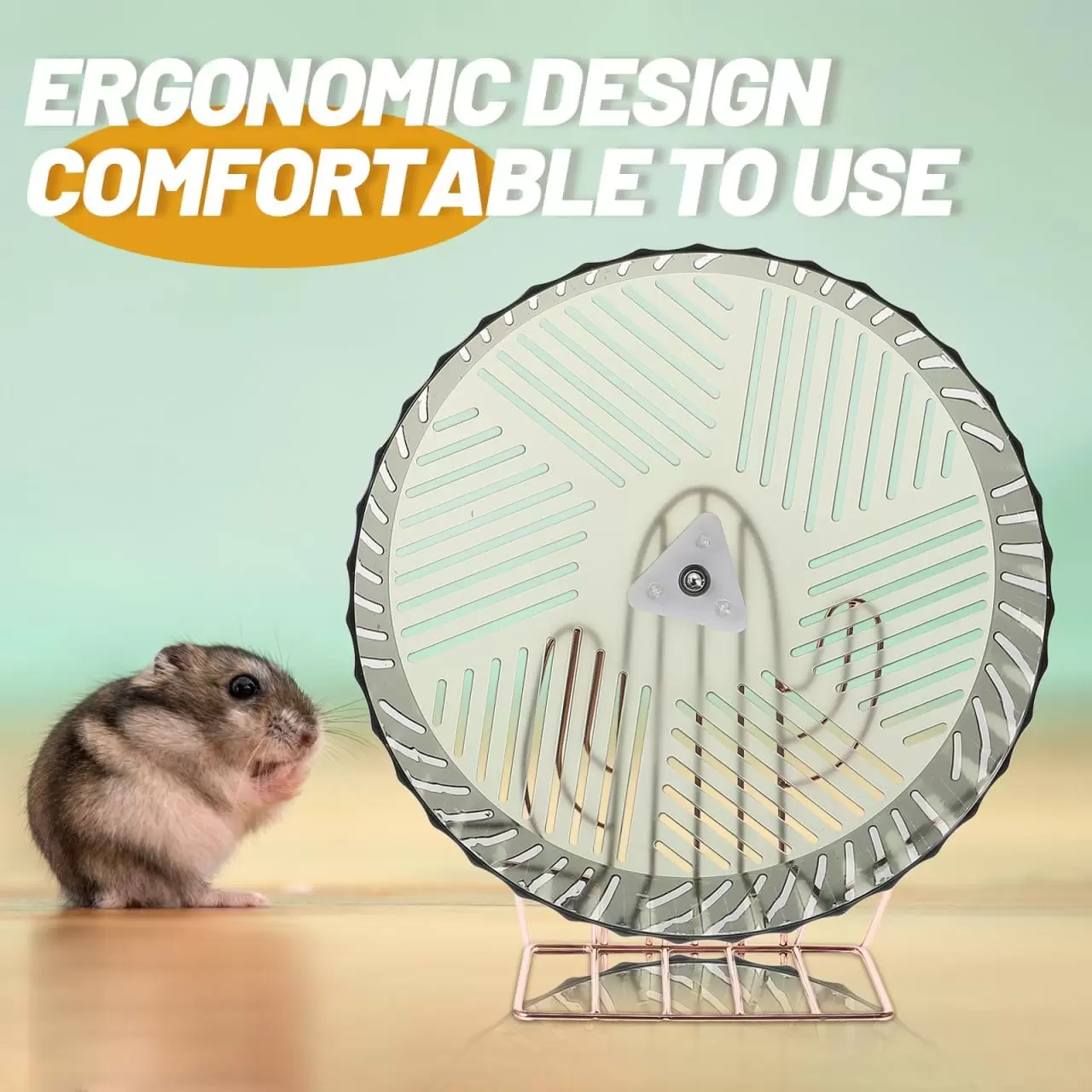 Rueda grande (26.5 cm), súper silenciosa y estable. Perfecta para rata, erizo y hámsteres grandes. Ayuda a construir músculo y alivia el estrés. ¡Ejercicio cómodo y sin ruido!