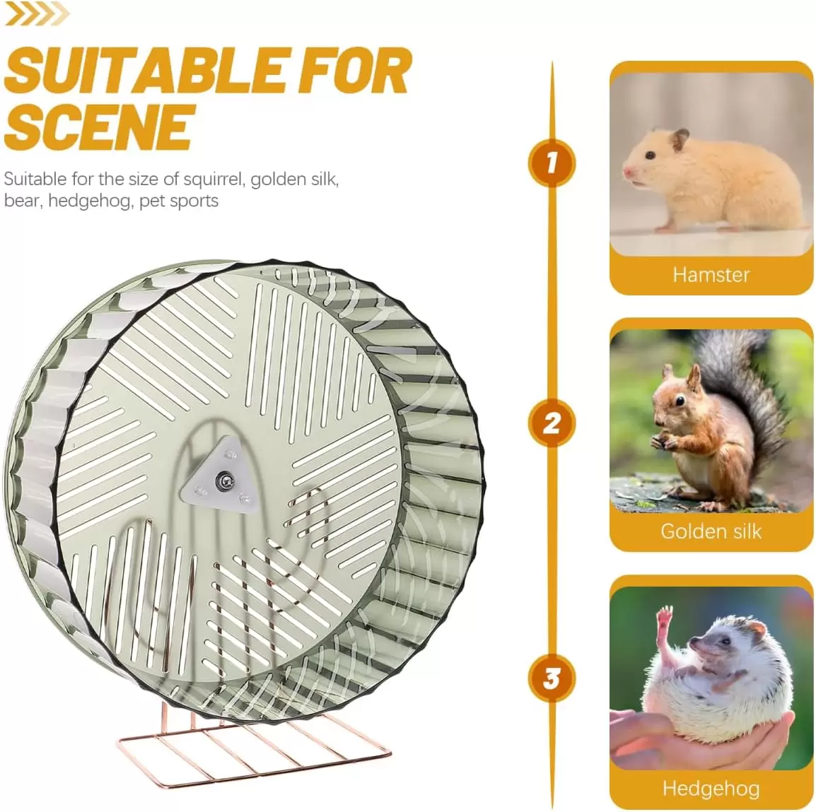 Rueda de hámster de ejercicio: es adecuada para deportes de mascotas del tamaño de ardilla, erizo, ratones, hámster, etc., rueda de chinchilla de jaula
