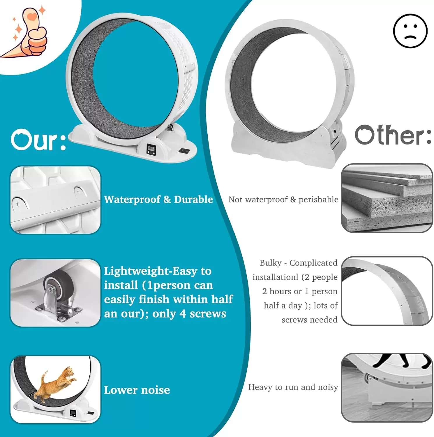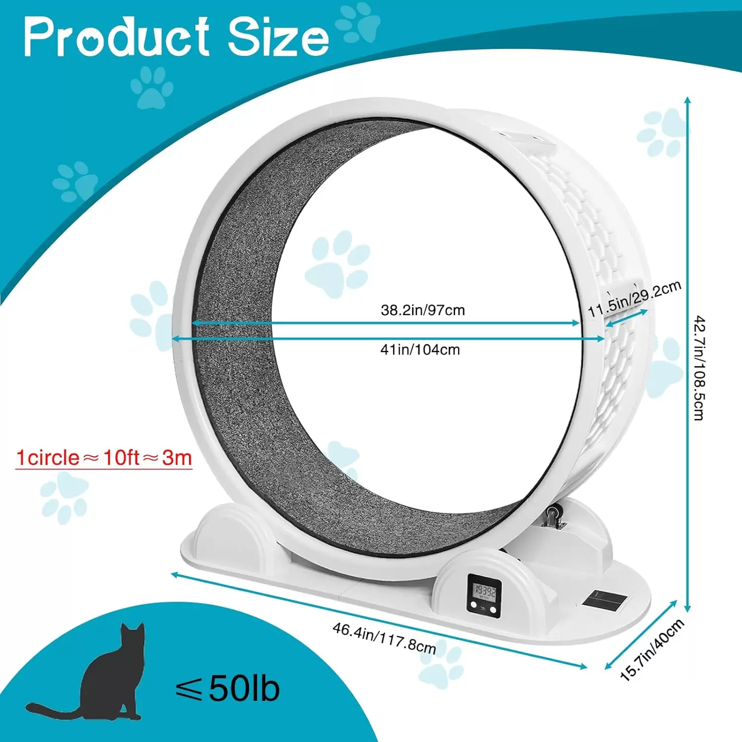 Tamaño extragrande: nuestra caminadora extragrande para gatos tiene un diámetro de 41 pulgadas y pesa 22 libras. Hecho de materiales de alta calidad, incluso los gatos grandes pueden correr a toda velocidad de forma fácil y segura sin volcarse