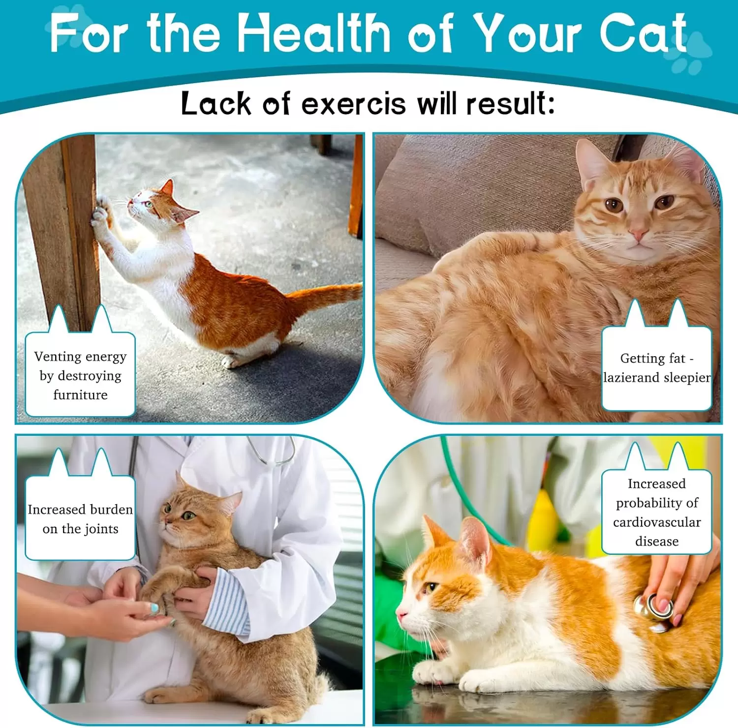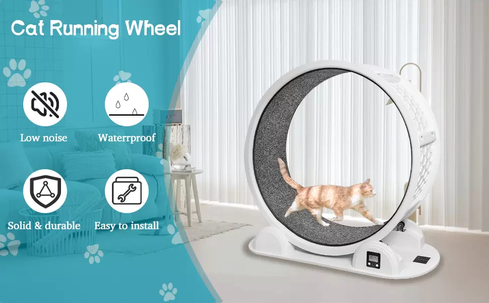 Diseño de reducción de ruido: el rodillo silencioso de TPE mejorado hace que la caminadora sea más silenciosa que las ruedas de madera, lo que no molestará tu vida y sueño, y no tienes que preocuparte por el ruido molestar a los vecinos incluso por la noche. La pasarela de alfombra fija con velcro se puede fijar perfectamente dentro de la rueda, proporcionando un agarre estable y seguro para que los gatos corran, y también puede ser un juguete rascador para gatos