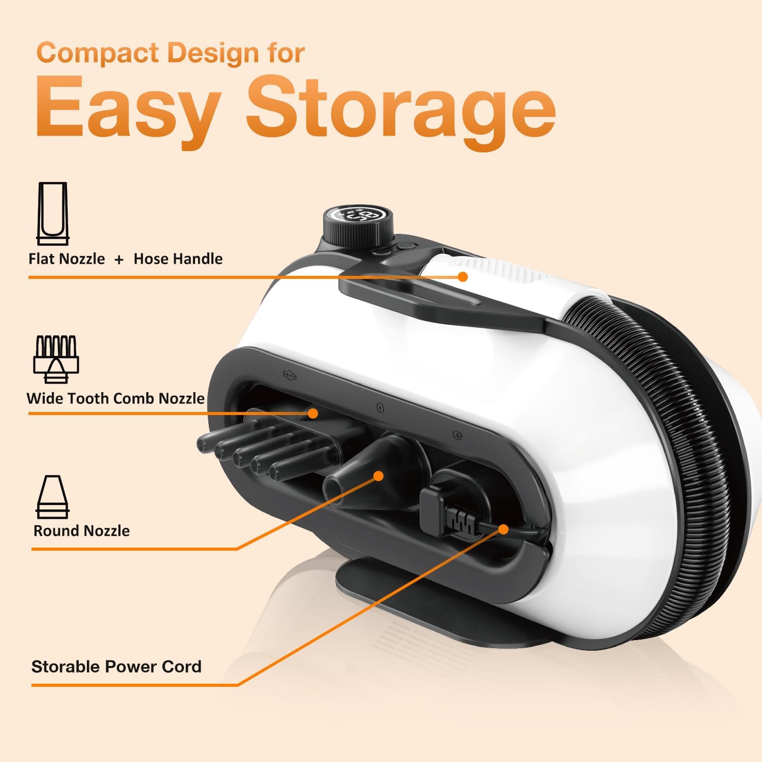 Flujo de aire de alta velocidad, velocidades ajustables: utilizando la tecnología BLDC, nuestra secadora puede secar el pelo de las mascotas de forma rápida y eficiente. El motor compacto sin escobillas de alta velocidad de desarrollo propio ofrece un flujo de aire revolucionario de hasta 280 mph, 5 veces más rápido que los secadores tradicionales. La velocidad se puede ajustar de 1 a 99 niveles, con 3 ajustes de temperatura.
