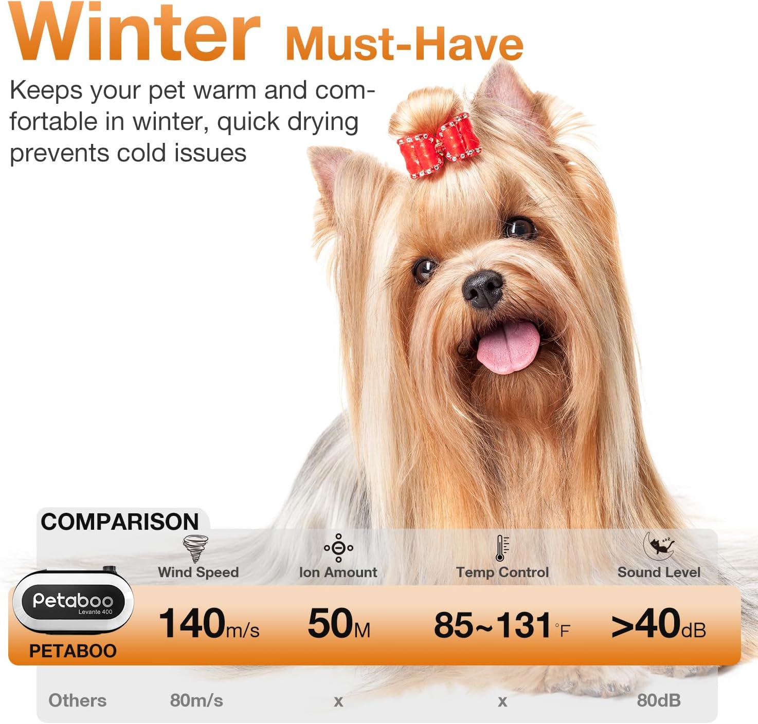 Pantalla LED inteligente: nuestro secador de mascotas cuenta con una pantalla LED para un fácil funcionamiento, mostrando niveles de velocidad del viento en tiempo real. El panel LED inteligente te permite leer y ajustar fácilmente el aire frío/caliente, los ajustes de velocidad del viento y las alertas de seguridad, eliminando problemas de legibilidad. petaboo garantiza una experiencia de aseo simple y conveniente.