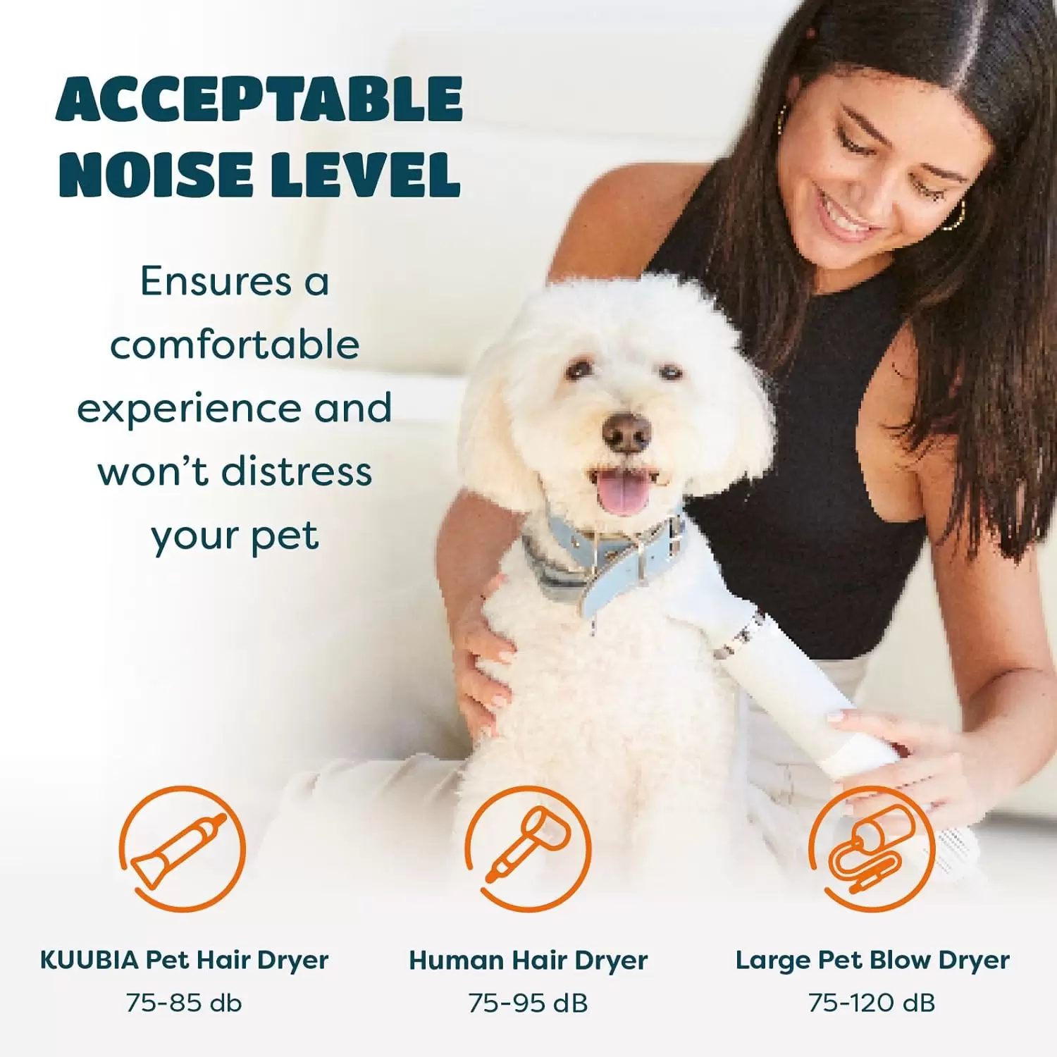 【Fácil de usar y para mascotas】Con un peso de solo 10 onzas, el mango antideslizante de esta secadora garantiza un uso fácil y cómodo. Sus características, incluyendo los ajustes de temperatura y viento, están diseñados para la máxima comodidad de las mascotas. El nivel de ruido es razonable de 75-85 dB, comparable a los secadores de pelo de perros similares.