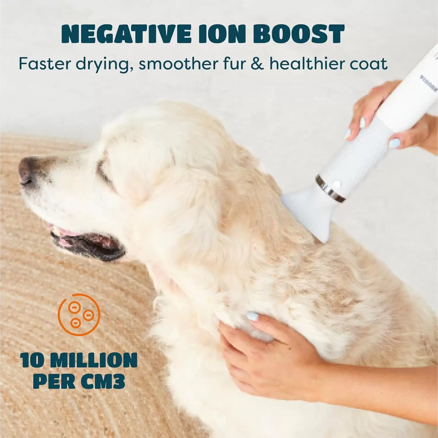 Potente viento con tecnología de iones negativos: el robusto motor de 900 W con tres velocidades de viento ajustables garantiza que este secador reduzca el tiempo total de secado. Además, libera 10 millones de iones negativos de alta concentración que suavizan el pelaje, minimizan la estática y el encrespamiento, y amplifican el brillo del pelaje, lo que resulta en una apariencia más saludable.