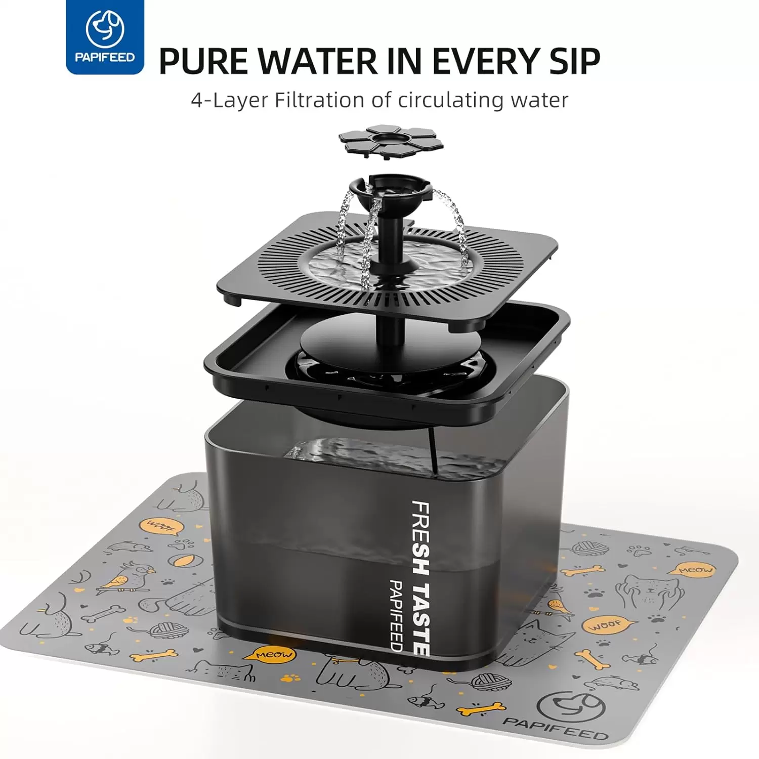 Combo 2 en 1: Incluye alimentador inteligente y fuente de agua con triple filtración.