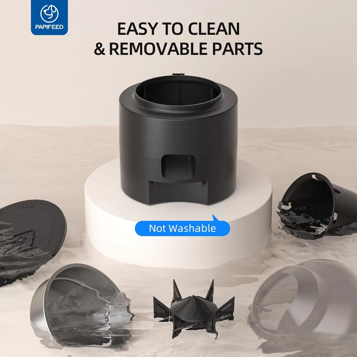 Higiene: Plato de acero inoxidable y piezas totalmente desmontables para limpieza fácil.