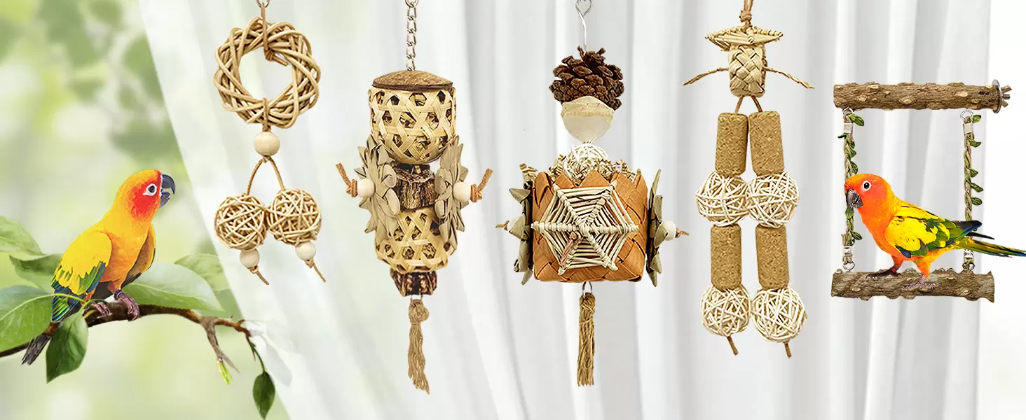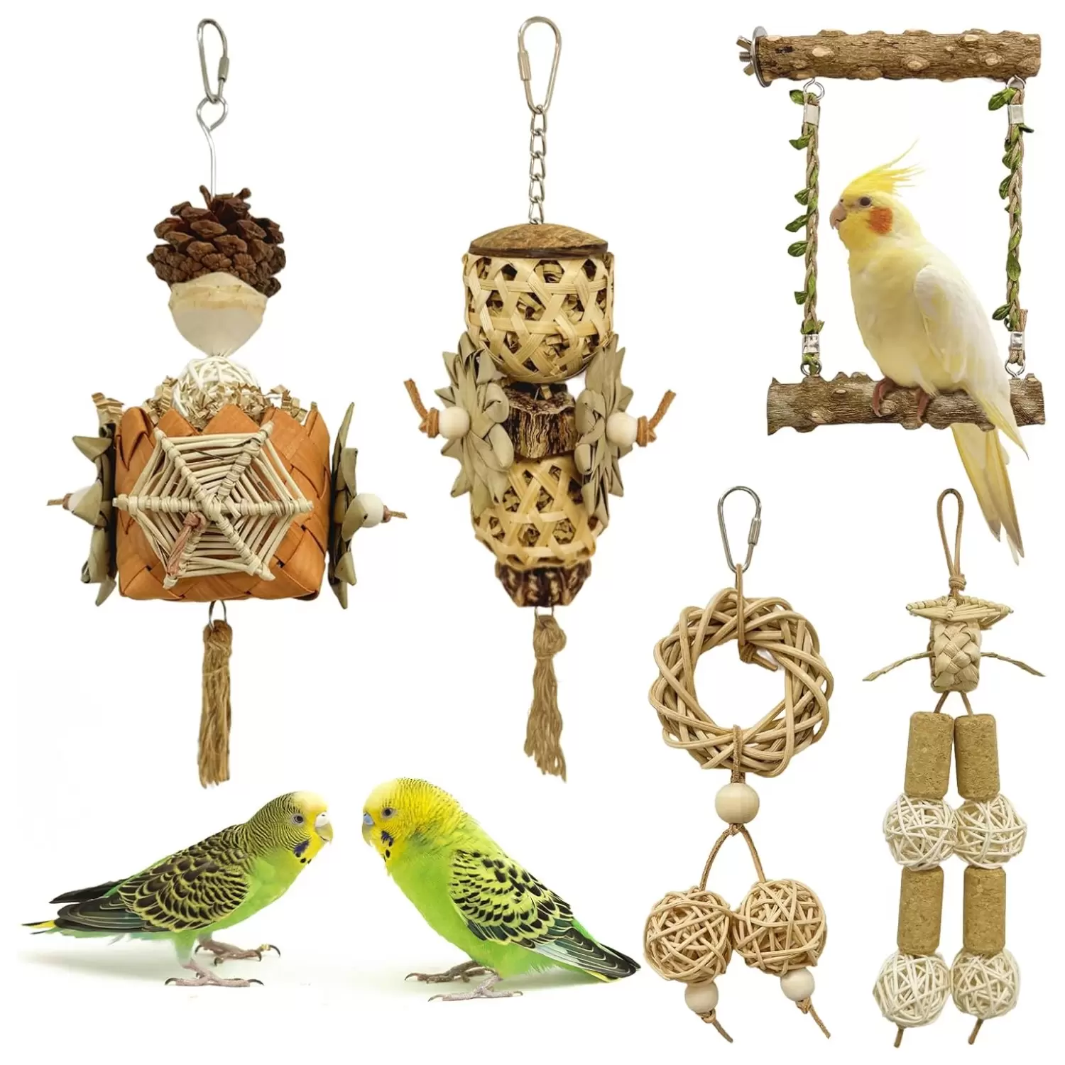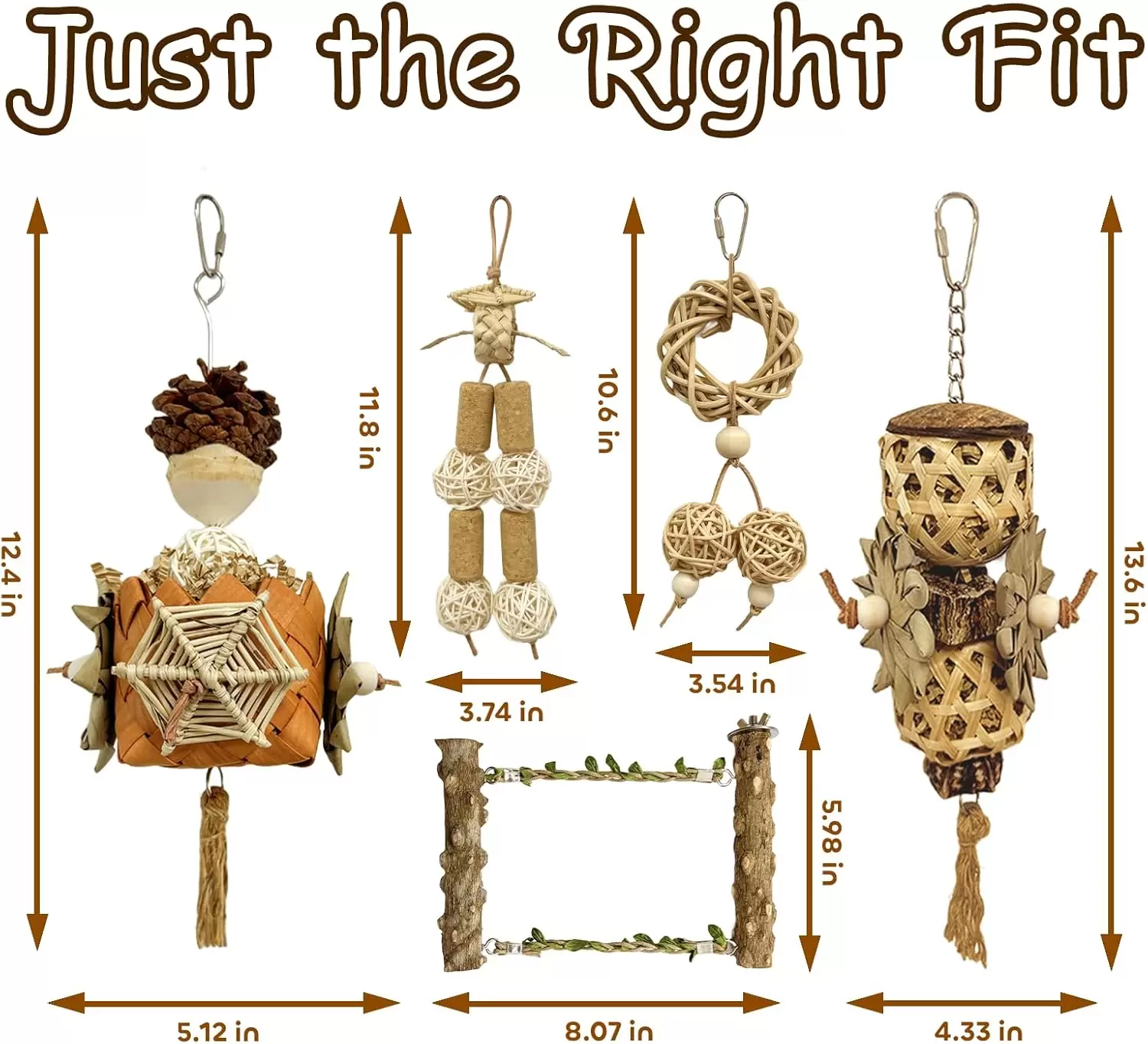 Set de 5 Juguetes Naturales para Loros y Periquitos para Masticar