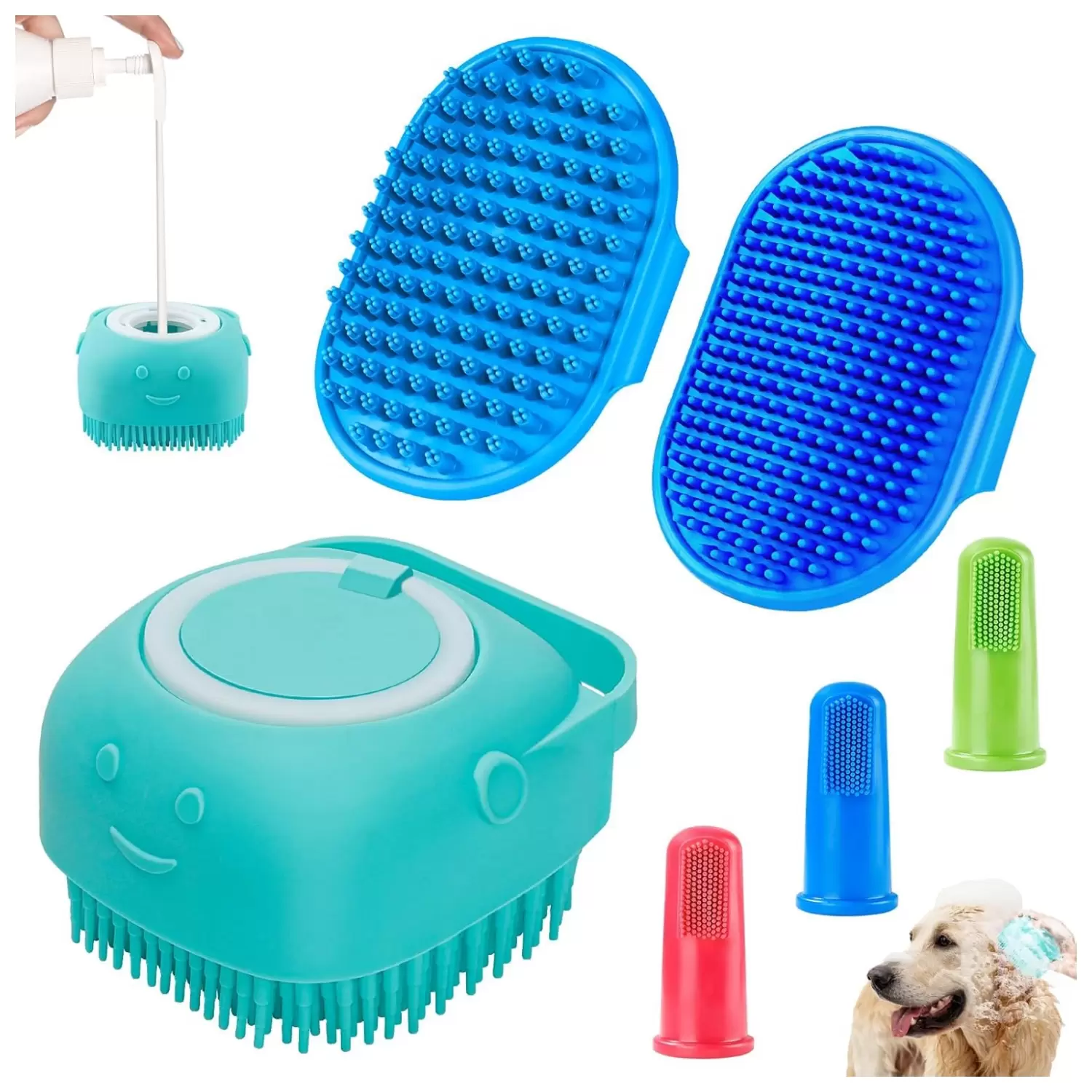 Suave y eficaz: este juego de cepillos de lavado para perros está hecho de silicona de alta calidad de grado alimenticio y materiales de goma TPR que son suaves, seguros y duraderos. Haz que la hora del baño de tu mascota sea simple, segura y eficaz.