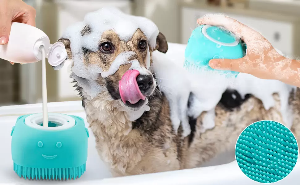 Fabricante de burbujas: este cepillo de champú para perros está diseñado con dispensación de champú, se puede rellenar con champú y apretar fácilmente para crear espuma rica, lo que puede lograr el efecto de ahorrar champú. Fácil de usar y rápido de limpiar.