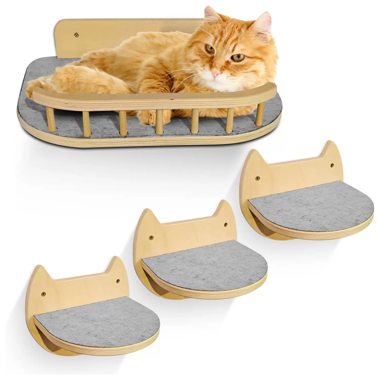 Set de Repisas de Pared para Gatos (25x20x15 cm) con Cama, 3 Escalones y Soporte de 30 Kilos.