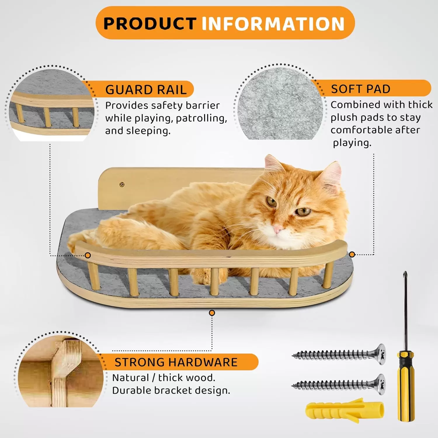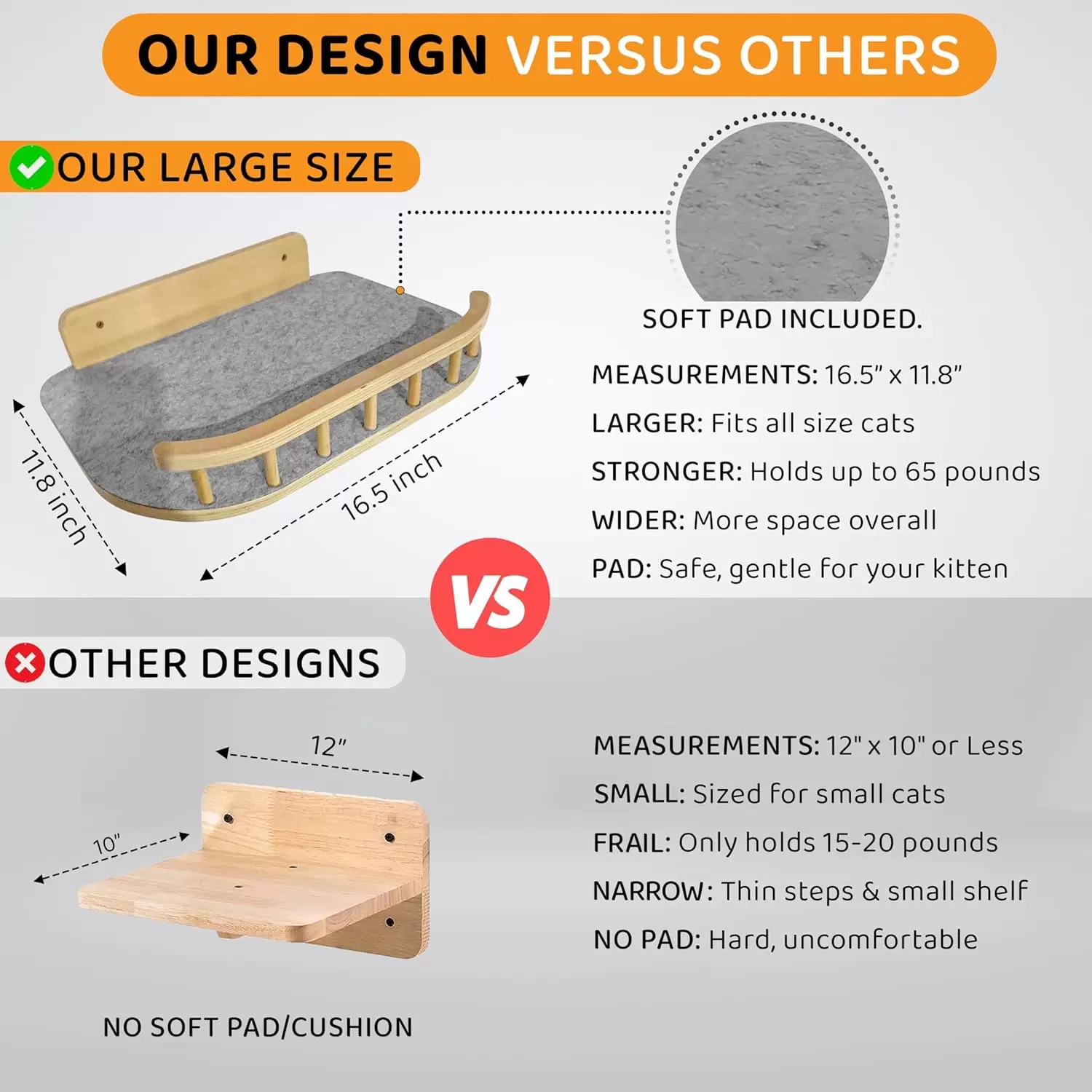 Madera Dura de Alta Calidad y Resistencia Extrema: Este set está fabricado con madera de alta calidad, no aglomerado débil. Su construcción robusta soporta hasta 30 kilos (65 libras), lo que lo hace ideal para gatos grandes o muy pesados. El acabado negro suave y los elementos de felpa proporcionan comodidad y seguridad.