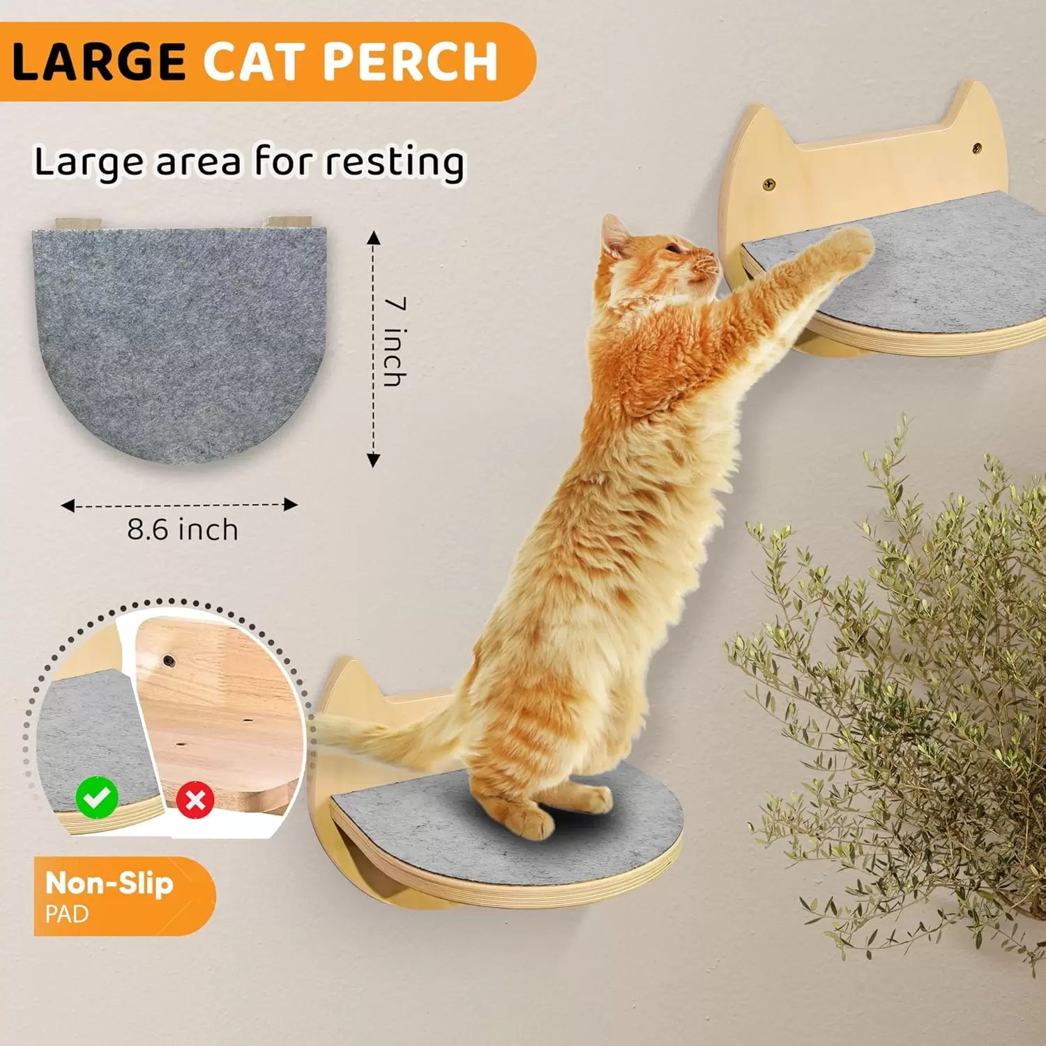 Set de Repisas de Pared para Gatos (25x20x15 cm) con Cama, 3 Escalones y Soporte de 30 Kilos