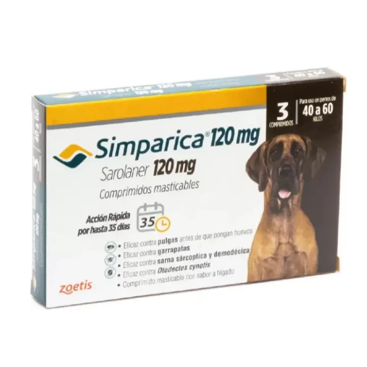 Simparica 120 mg (3 Comprimidos): Antiparasitario para Perros Gigantes (40 a 60 kg)