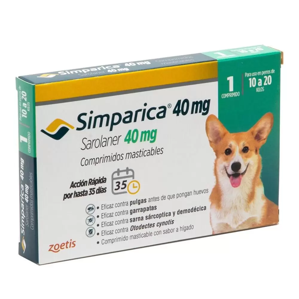 Simparica 40 mg (1 Comprimido): Protección de 35 Días para Perros de 10 a 20 kg