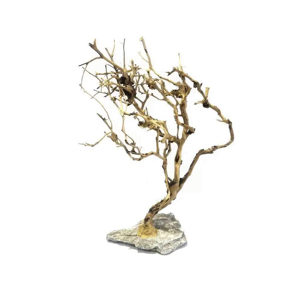 Árbol en miniatura con base de roca, perfecto para acuarios plantados. Tiene un tamaño de 20 a 30 cm y resistente perfectamente bajo el agua.