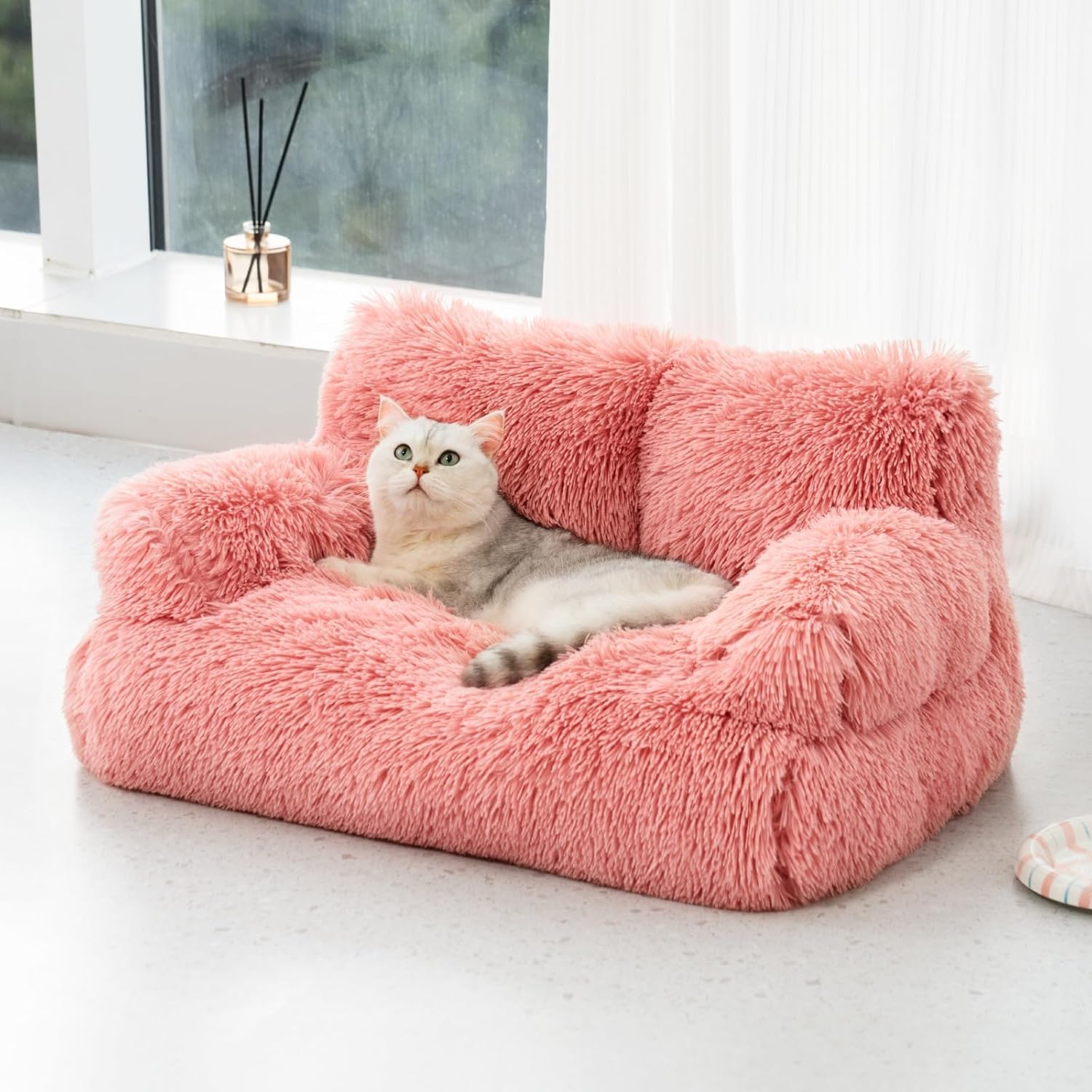 Diseño elegante: nuestro sofá para mascotas cuenta con un diseño elegante y moderno que combina perfectamente con la decoración de tu hogar. Su tapicería de estilo contemporáneo la convierte en una adición atractiva a cualquier espacio vital