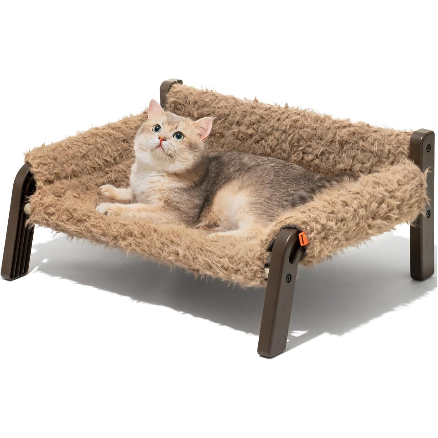 Diseño de sofá elevado para gatos: este sofá para gatos mejora la visibilidad y una sensación de seguridad para tu gato y perro pequeño, el diseño elevado hace que sea más fácil de limpiar y mantener; la superficie está hecha de piel sintética adorable y suave, lo que crea un ambiente cómodo para dormir para tus mascotas