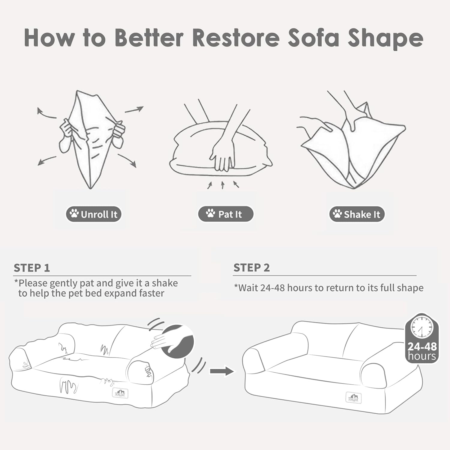 Consejos de montaje: la cama para gatos Hollypet llegará como una cama empaquetada al vacío en una caja, desempaqueta cuidadosamente el sofá para gatos, luego dale palmaditas y agítala para asegurarte de que esté completamente esponjosa y espera 48 horas antes de usar la cama para mascotas