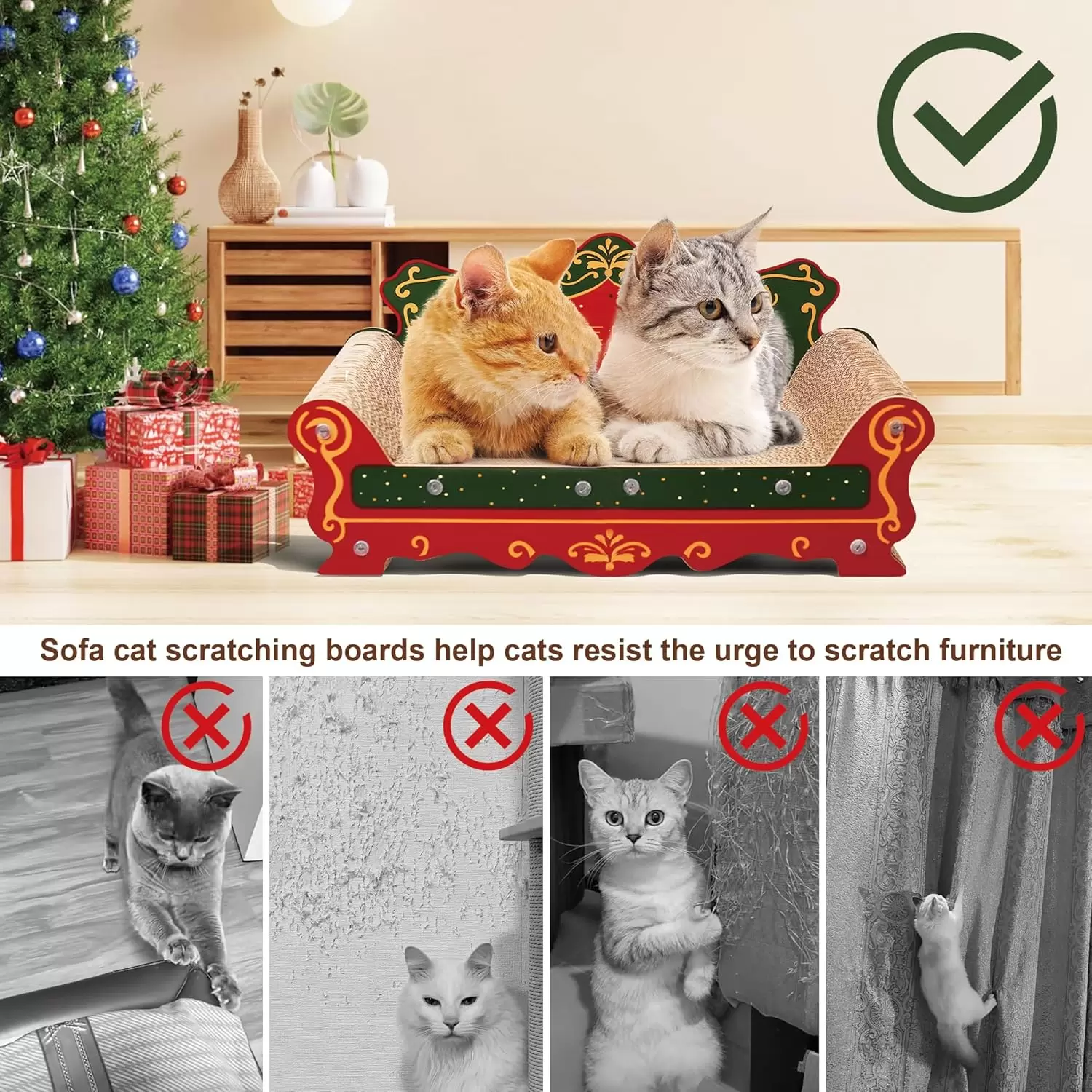 Sofá Rascador Navideño para Gatos (58x31x27 cm) | Cartón Corrugado Alta Densidad | Doble Uso y Antiestrés