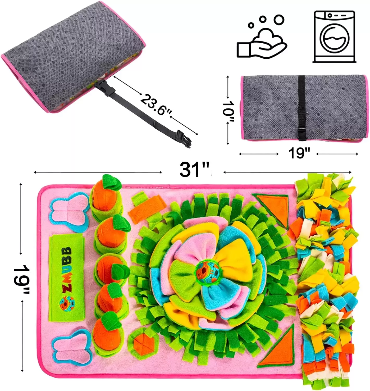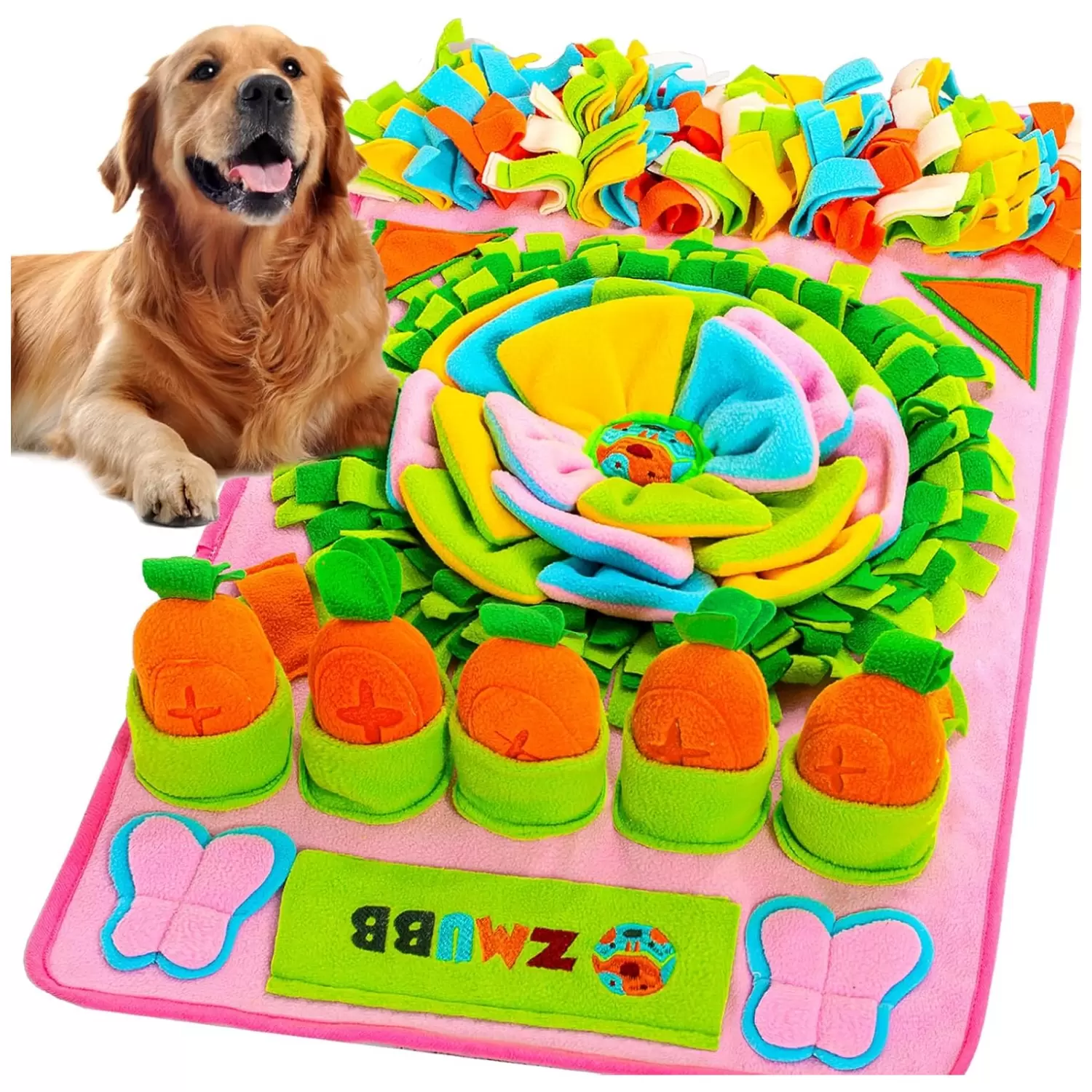 Seguro y divertido: el tapete para olfatear perro está hecho de poliéster de alta calidad y construcción duradera que es segura para ti y tus mascotas. Puedes ocultar golosinas en las ricas formas de hierba para animar a tu perro a buscar alimento de forma natural. Un chirriante en el centro del pétalo, cinco zanahorias seguidas y varios trozos de papel de timbre colocados al azar despiertan el interés de su perro y les dan mucha diversión.