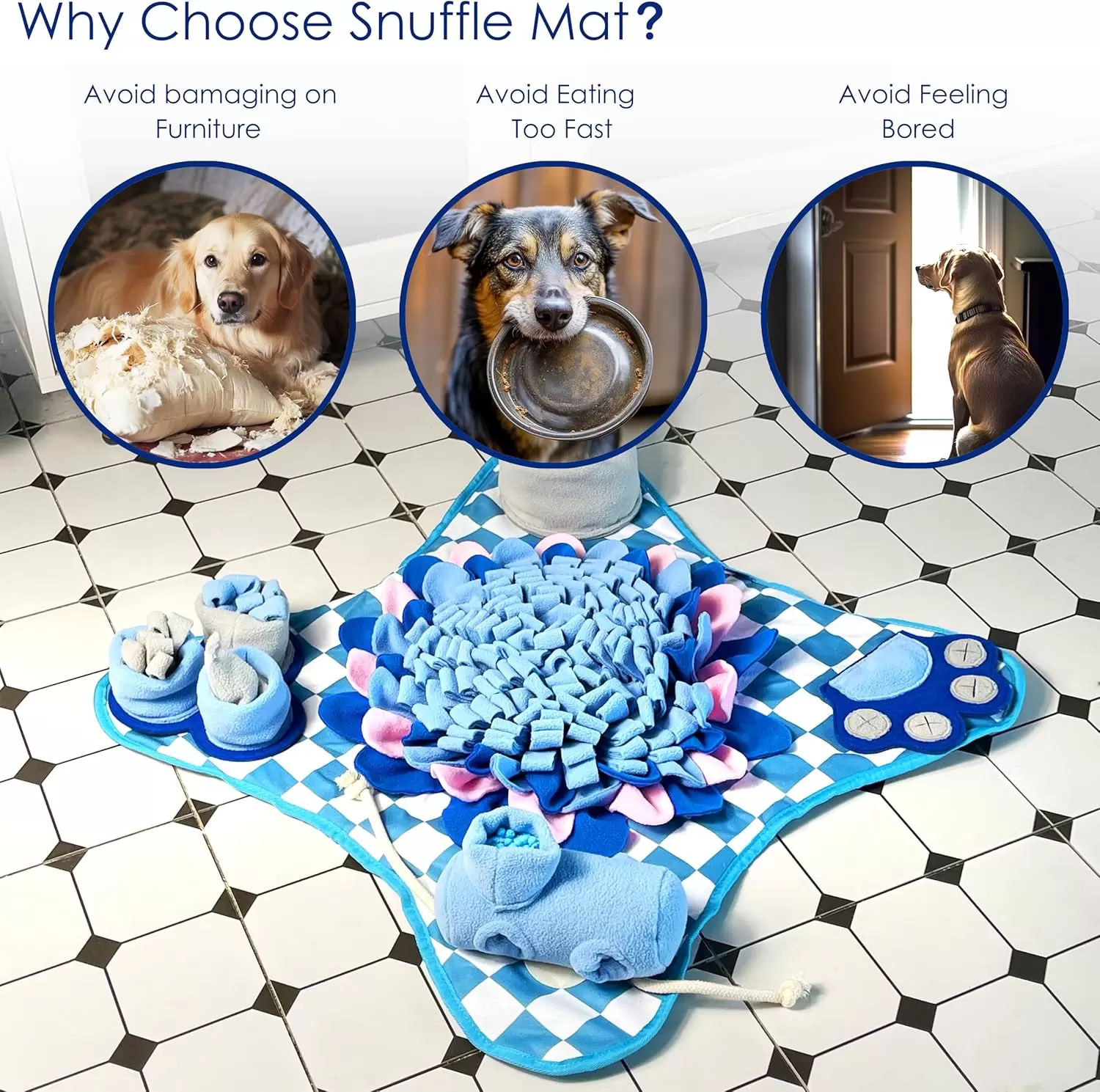 Un tapete de olfateo para perros y gatos en Chile. Es un juguete de enriquecimiento mental y de rompecabezas, ideal para combatir el aburrimiento y el estrés en tus mascotas.