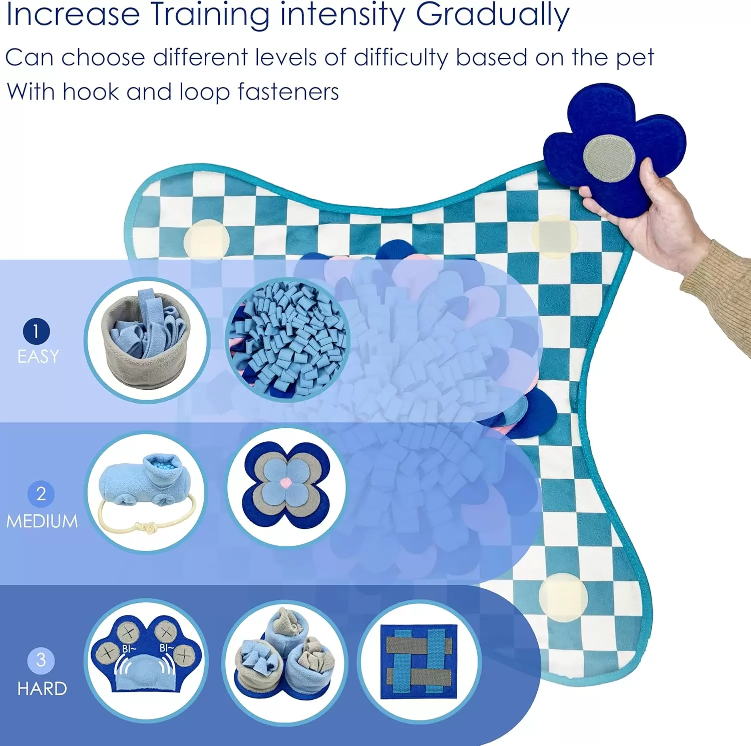 Diversión y reduce la ansiedad: múltiples accesorios se pueden combinar libremente para crear una variedad de juguetes temáticos que proporcionan estimulación mental para perros. Cada juguete para olfatear cuenta con diferentes niveles de dificultad, lo que anima a tu perro a buscar comida con más paciencia mientras resuelve rompecabezas para perros. Los juguetes también se pueden utilizar individualmente, mejorando el vínculo entre tú y tu perro.