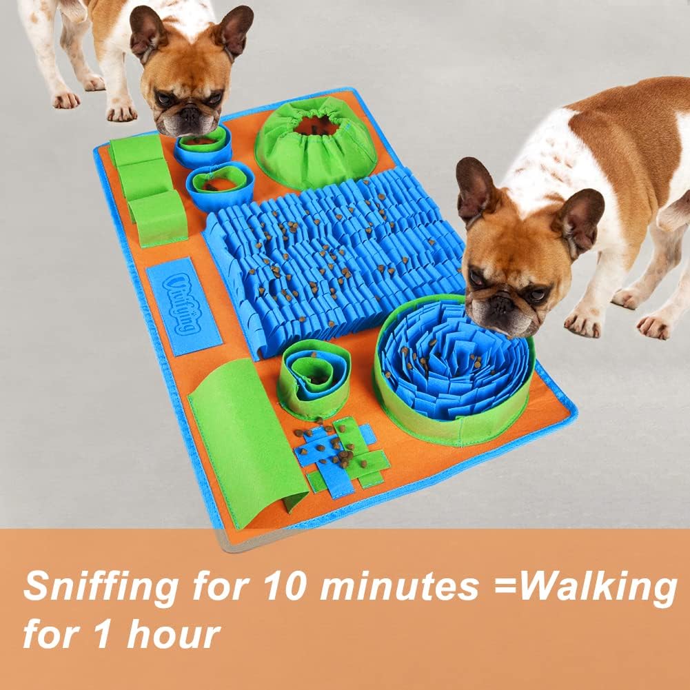 8 lugares diferentes para ocultar golosinas: esta alfombrilla para olfatear para perros contiene 8 lugares diferentes para ocultar alimentos o golosinas, aumentar la diversión, el desafío y la intensidad de entrenamiento de la búsqueda de comida. Te permite disfrutar del momento feliz de interactuar con tus perros y evitar que tu perro destruya los muebles debido al aburrimiento