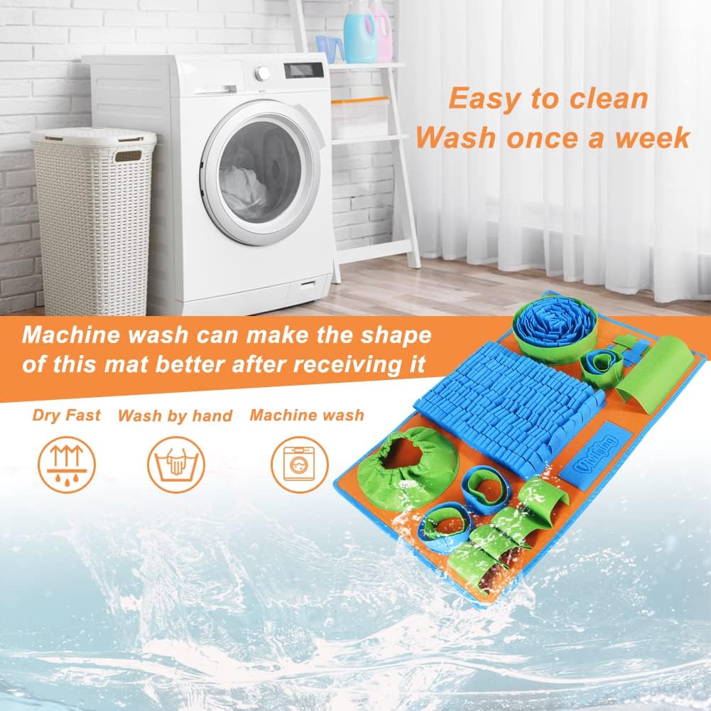 Materiales de seguridad: el material principal de la alfombrilla de forraje es tela de fieltro, que es segura pero no a prueba de masticación. Cuando recibas esta alfombrilla de fieltro, lávala a máquina una vez para que la forma sea tan buena como la imagen
