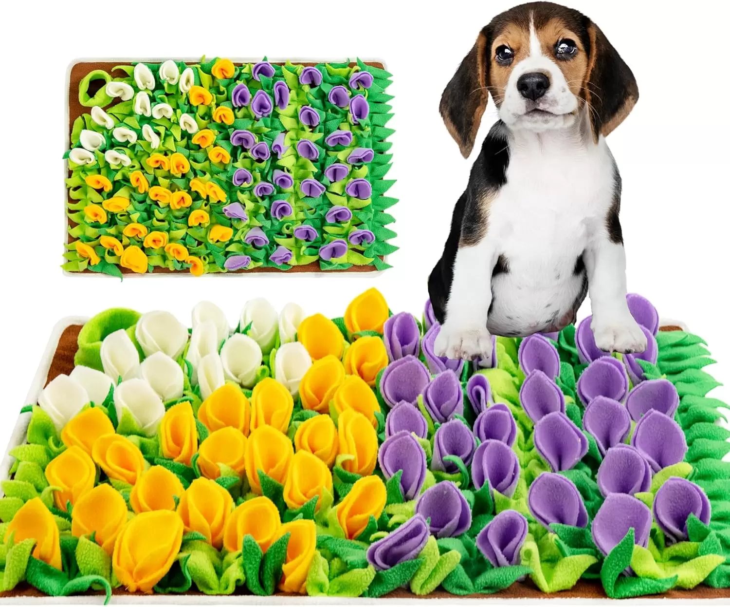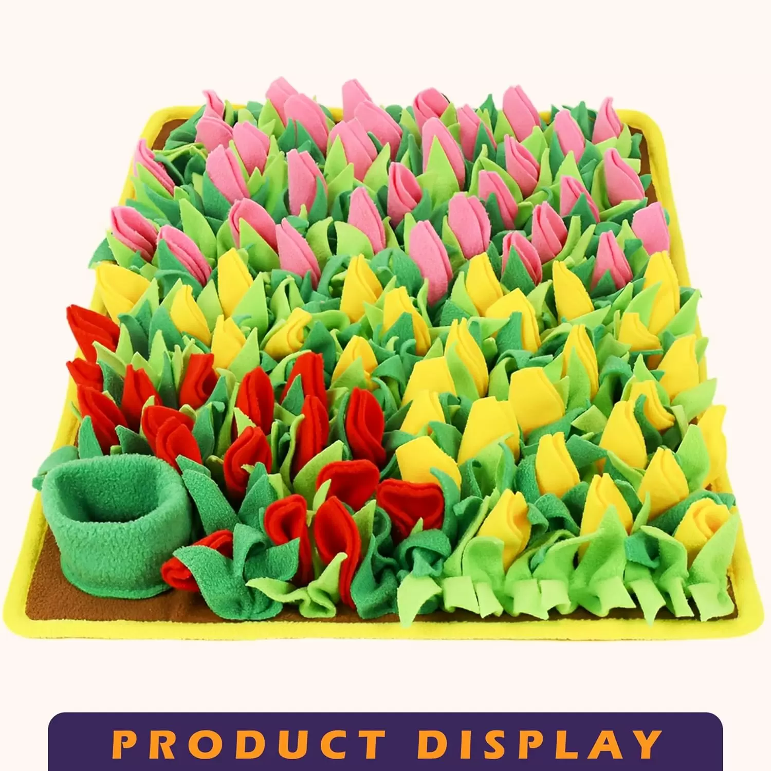 Diseño único: el tamaño de 23.62 x 15.75 pulgadas es adecuado para perros de todas las edades y tamaños. El brillante diseño de flores de tulipán hace que la alimentación sea más divertida, más fácil liberar el estrés de los perros y consume el exceso de energía de las mascotas. La parte inferior de la alfombrilla para olfatear perros adopta almohadillas antideslizantes, lo que hace que el proceso de entrenamiento sea más seguro y la vida útil sea más larga.