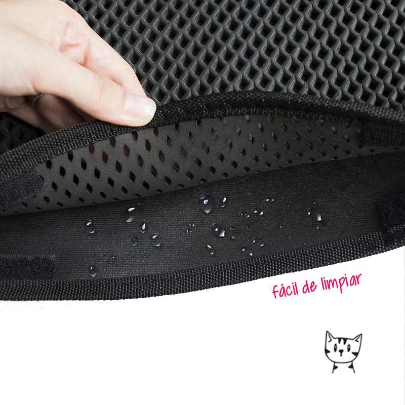 El tapete recolector de arena hace más fácil mantener la casa limpia. Su diseño especial y práctico ayuda a que la arena quede atrapada entre la capa superior y la capa inferior del tapete, haciendo más fácil regresarla al arenero.