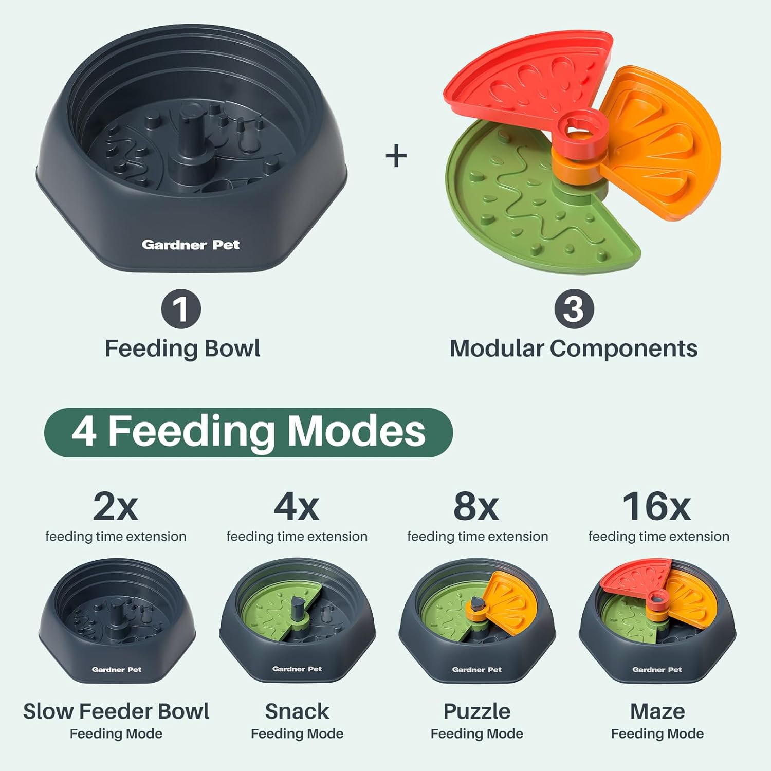 Tazón de alimentación lenta con patrón de crestas y laberinto: Este cuenco para perros presenta un patrón de crestas y laberinto con tres plataformas desmontables para ofrecer cuatro modos de alimentación distintos. Al comprar este tazón único, obtienes cuatro cuencos en uno que ayuda a tu perro a comer más lento que 16 veces