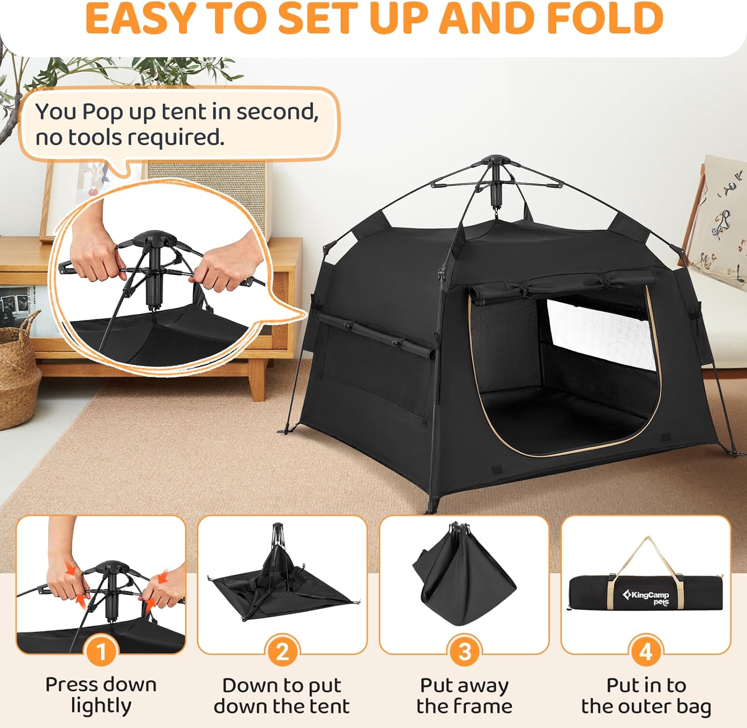 Cómodo de usar: puedes desplegar el corralito en segundo, no requiere herramientas. El corralito para mascotas KingCamp Senior para perros pequeños/medianos tiene correas elásticas autoretráctiles, fácil de desplegar y plegar. Bolsillo exterior con cremallera, fácil de transportar y almacenar. Utiliza este corral desplegable como una perrera para perros pequeños/cachorros en interiores o jaula de mascotas en casa. O un corralito para gatos al aire libre/recinto para gatos para exteriores, tienda de campaña para mascotas al aire libre cuando acampas, pícnics, viajes y otras actividades.