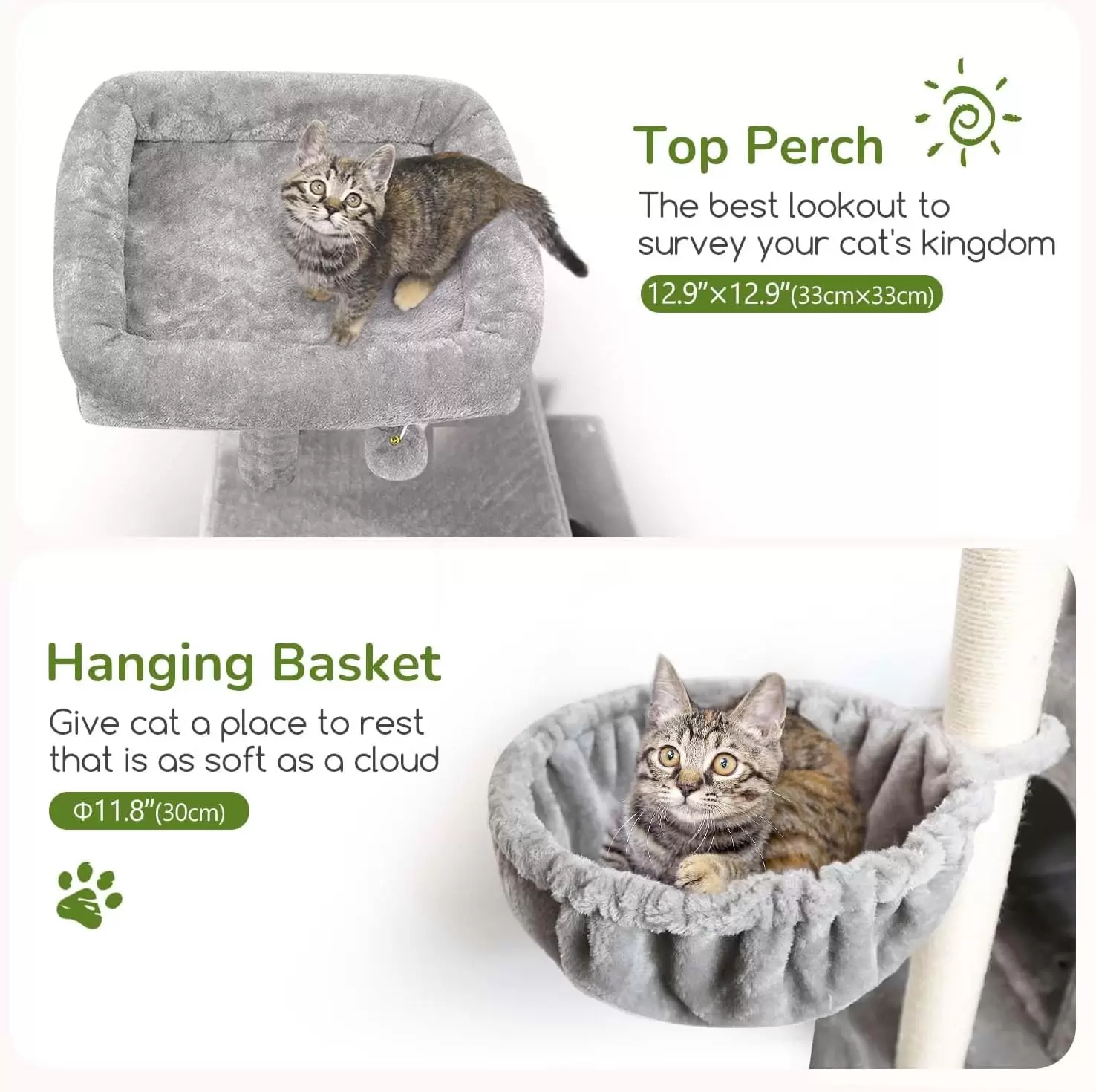 Decoracion Innovadora y Seguridad: Con esquemas de color cuidadosamente seleccionados, este mueble decora su hogar. Ademas, cada nivel esta meticulosamente diseñado para proporcionar estabilidad estructural, creando un entorno seguro para que los gatos jueguen sin riesgos.