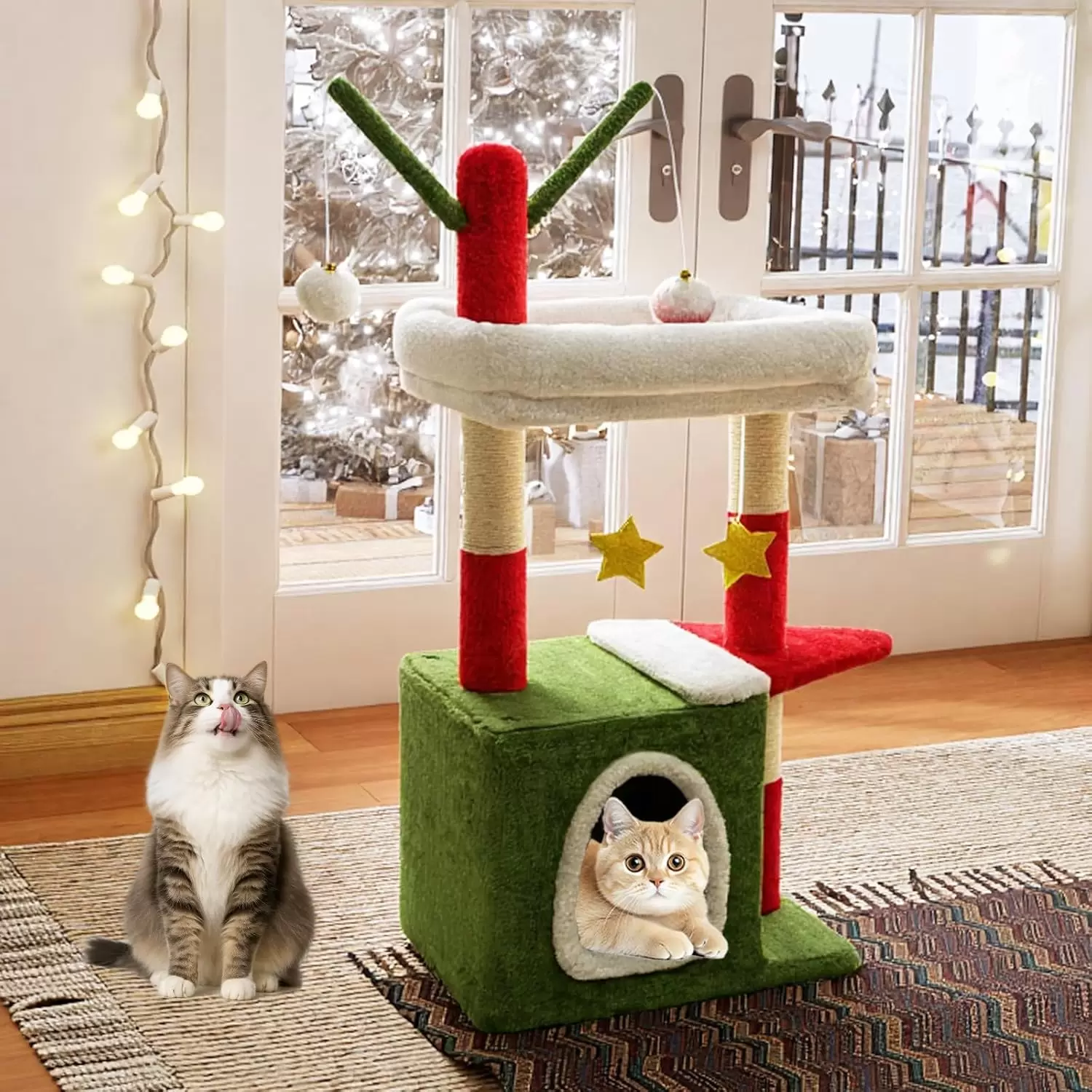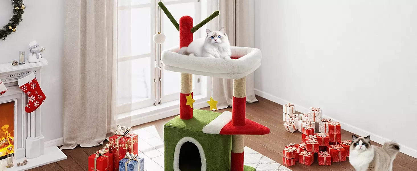 🎄 Torre de Gatos 4 en 1: Juego, Descanso y Decoración Festiva