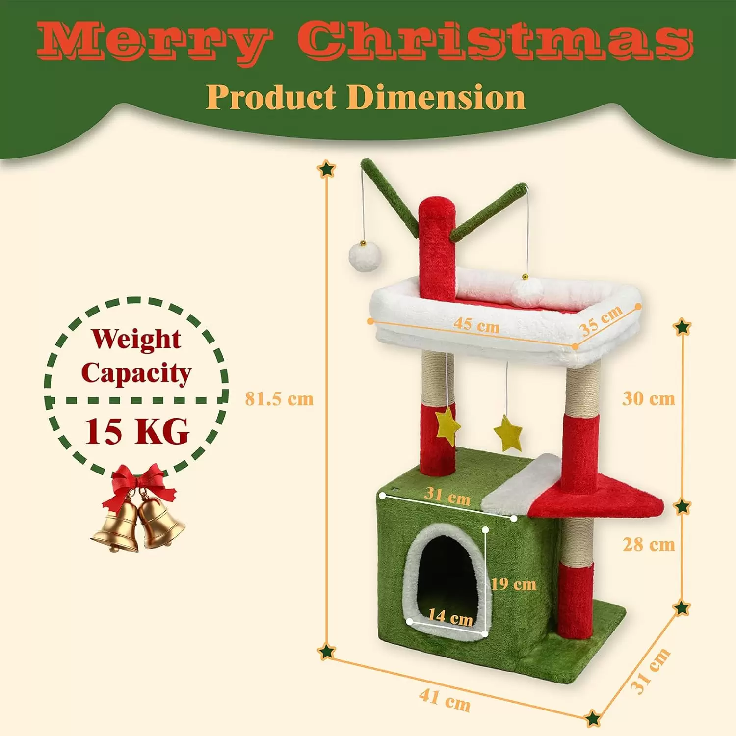 Torre de Gatos Navideña (30x81x102 cm) | Multi-Nivel, Sisal y Casa Cerrada | Soporta 15 kg y Anti-Vuelco