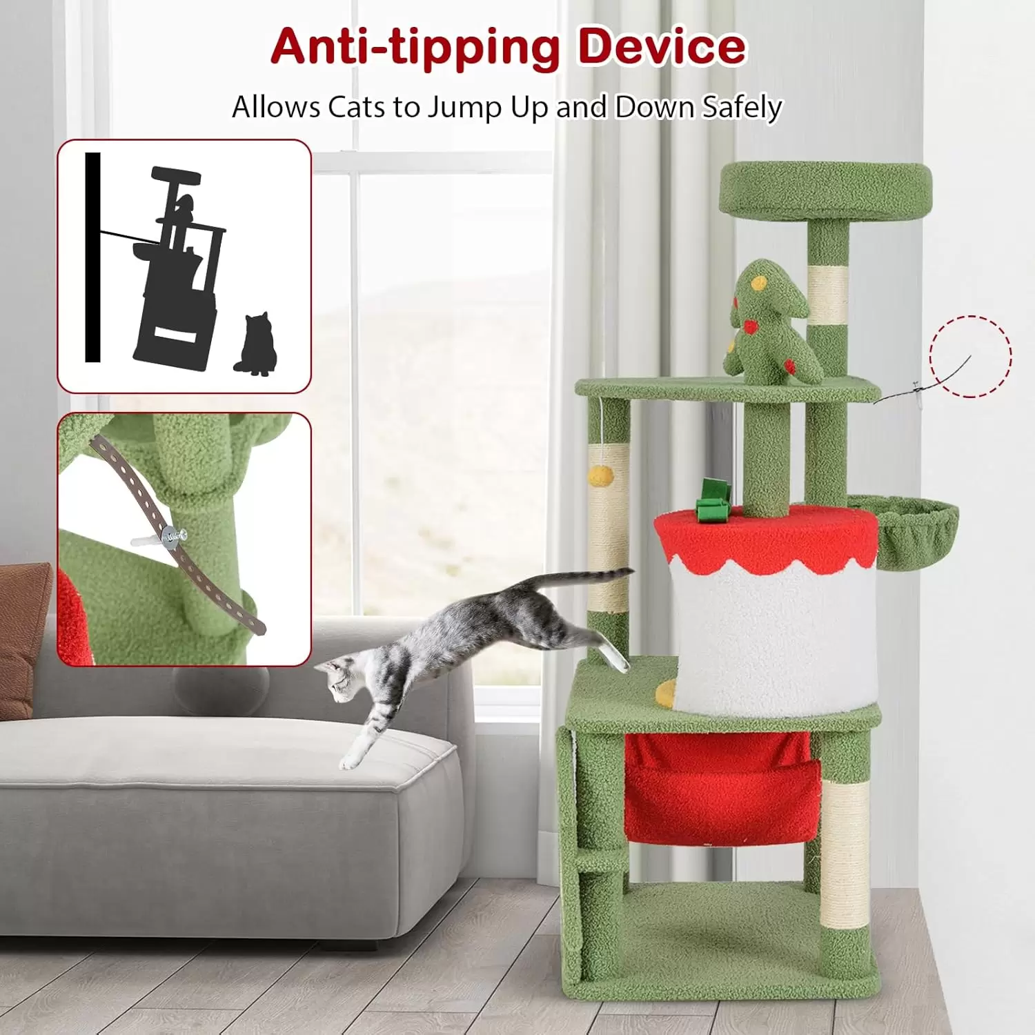 Torre de Gatos Navideña (60x50x132 cm) | Condominio, Hamaca y Base Anti-Vuelco | Poste Rascador Resistente