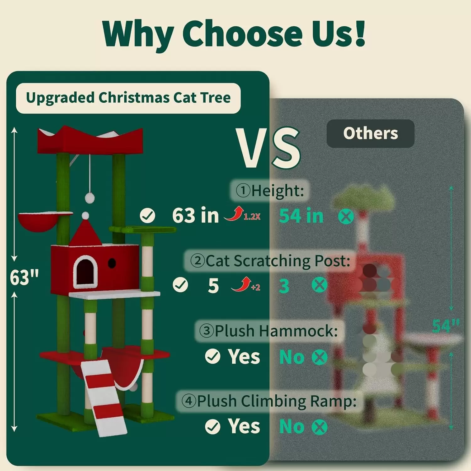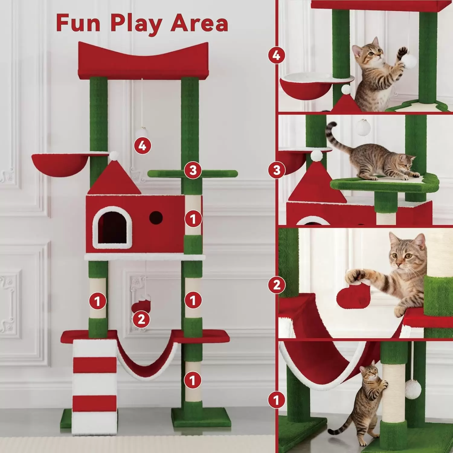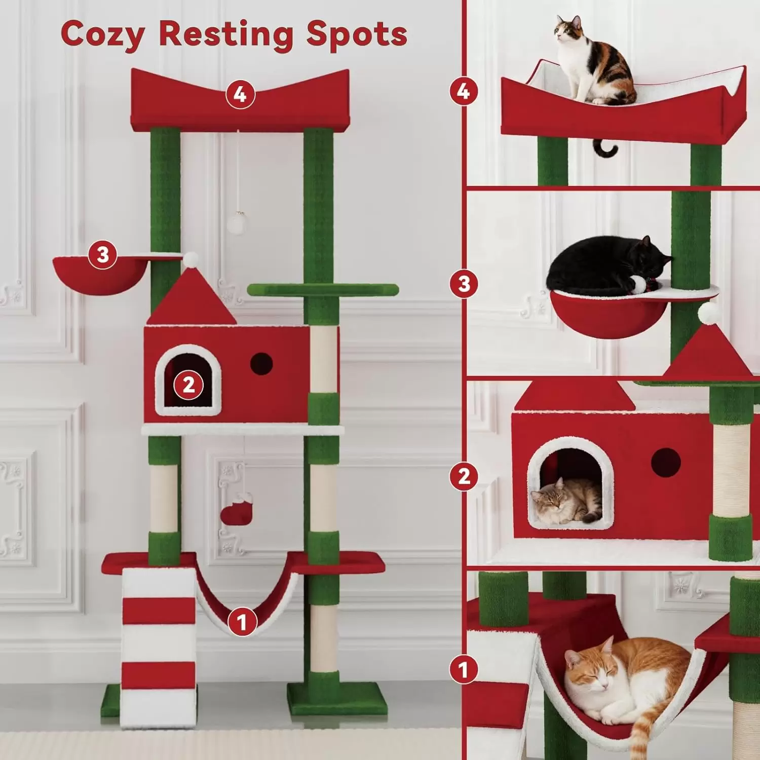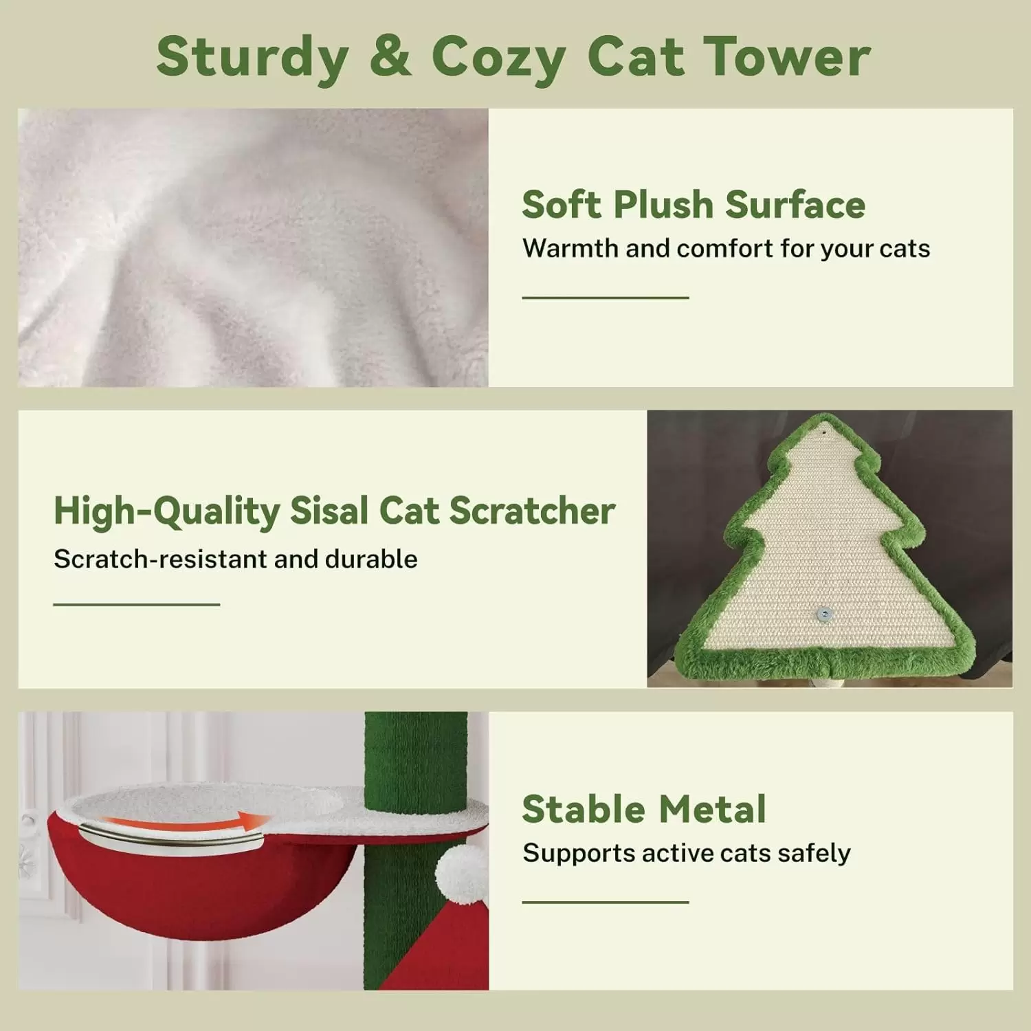 Torre de Gatos Navideña (73x48x160 cm) | 5 Rascadores, 6 Áreas de Juego y Estabilidad Anti-Vuelco