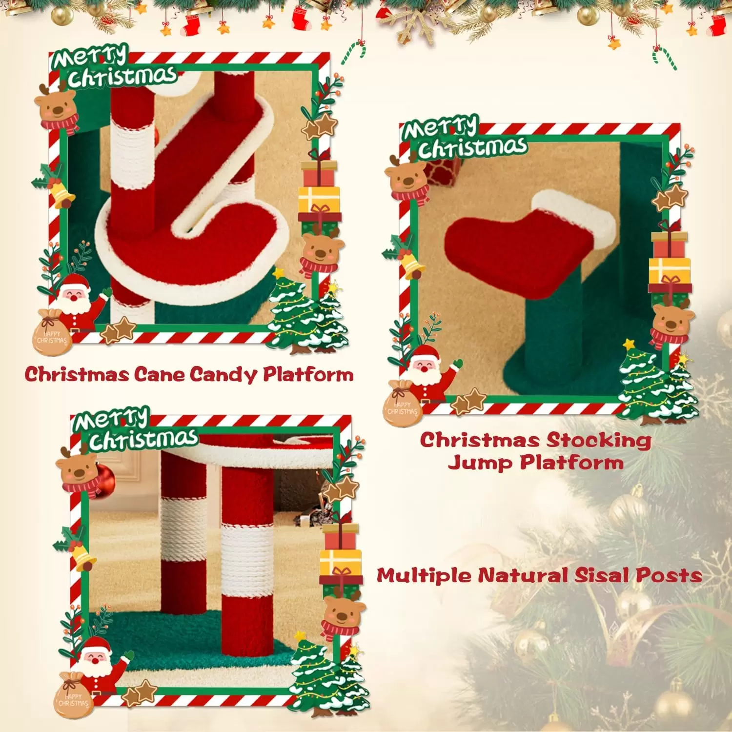 Torre para Gatos (55x50x144 cm) | Navideña, 2 Condominios y Sisal Engrosado